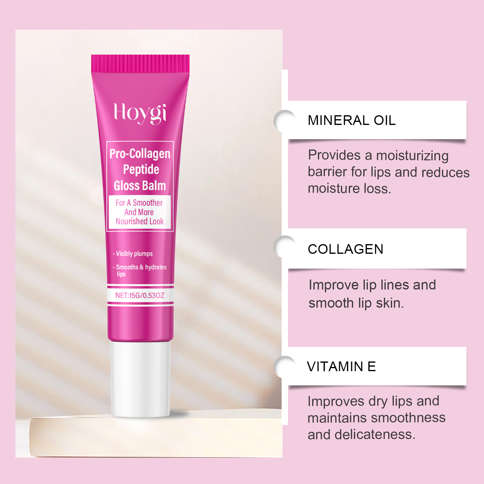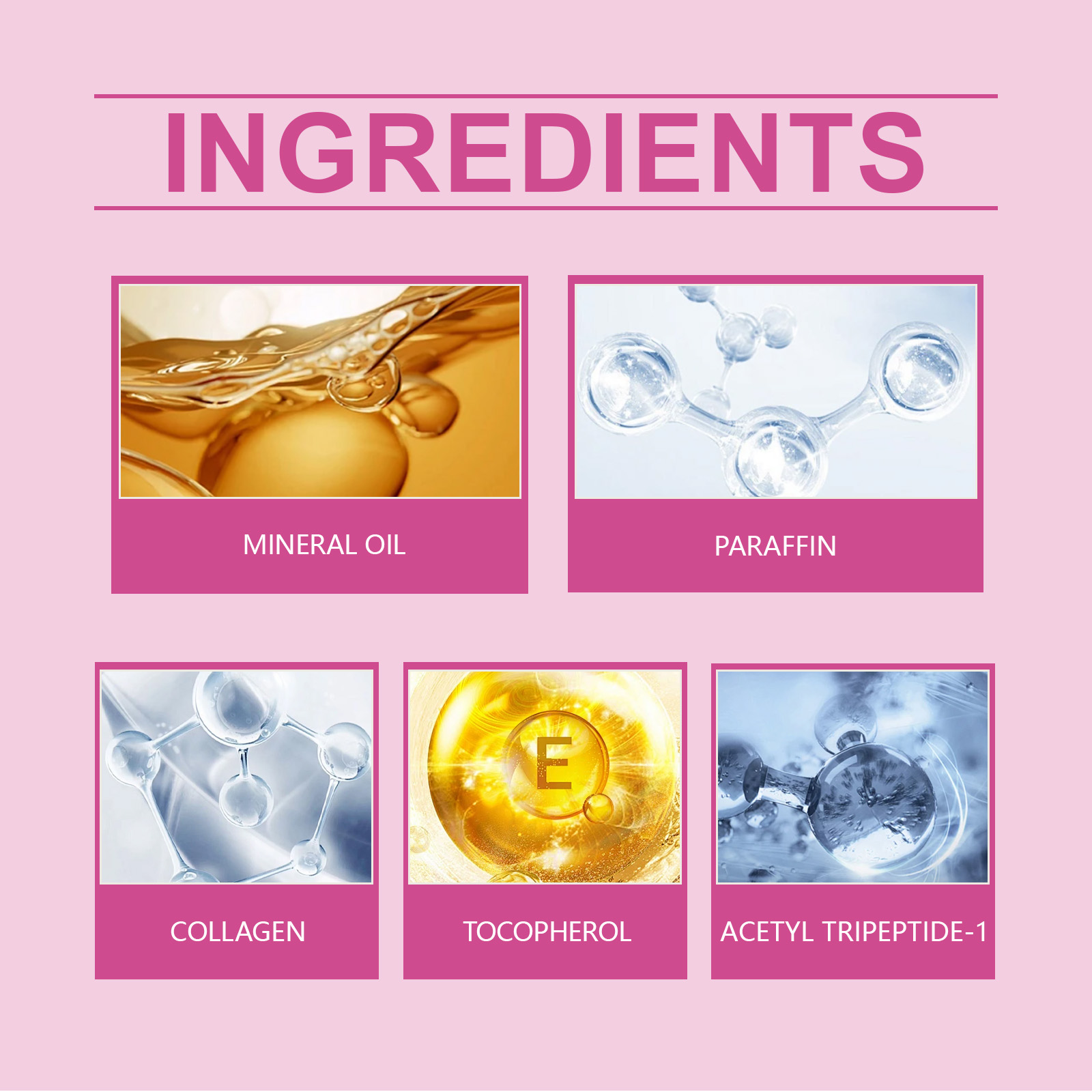 Our plump and moisturizing lipsticks contain collagen, acetyl tripeptide-1, and tocopherol (vitamin E). It can deeply moisturize the lips and keep the skin soft and smooth. Its application method is very simple: thoroughly clean the lip skin and dry it first, take an appropriate amount of this product evenly apply to the lip skin. And can form an effective protective layer, reduce water loss, retain water.