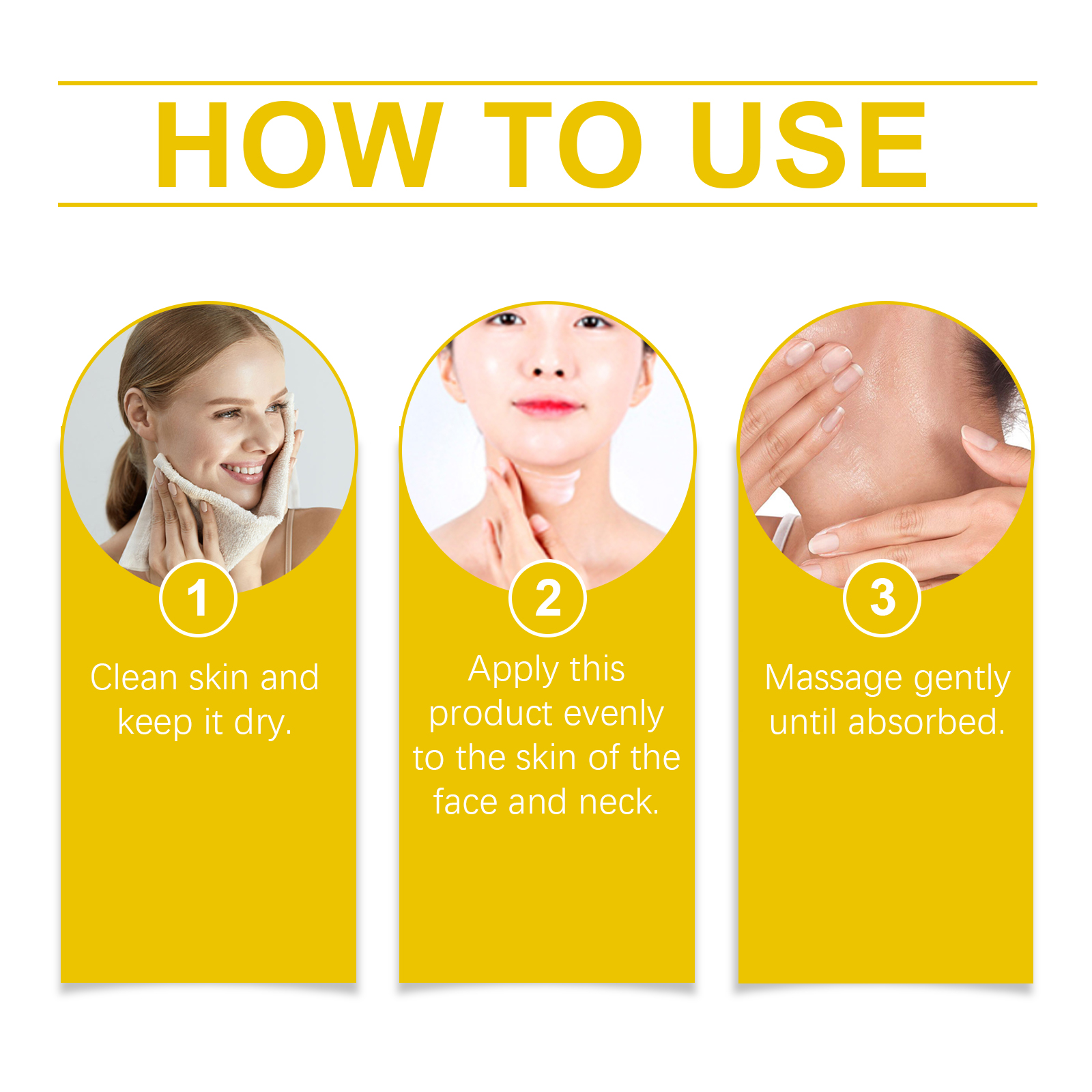 Our neck cream contains collagen, olive oil and shea butter. It can improve skin firmness and effectively combat skin sagging and aging. The way to use it is simple: 1. Clean your skin and keep it dry. 2. Evenly apply the product to the face and neck. 3. Gently massage until absorbed. Fast absorption, strong penetration, nutrients into the skin. Enhances the brightness of the skin tone and makes the skin brighter.