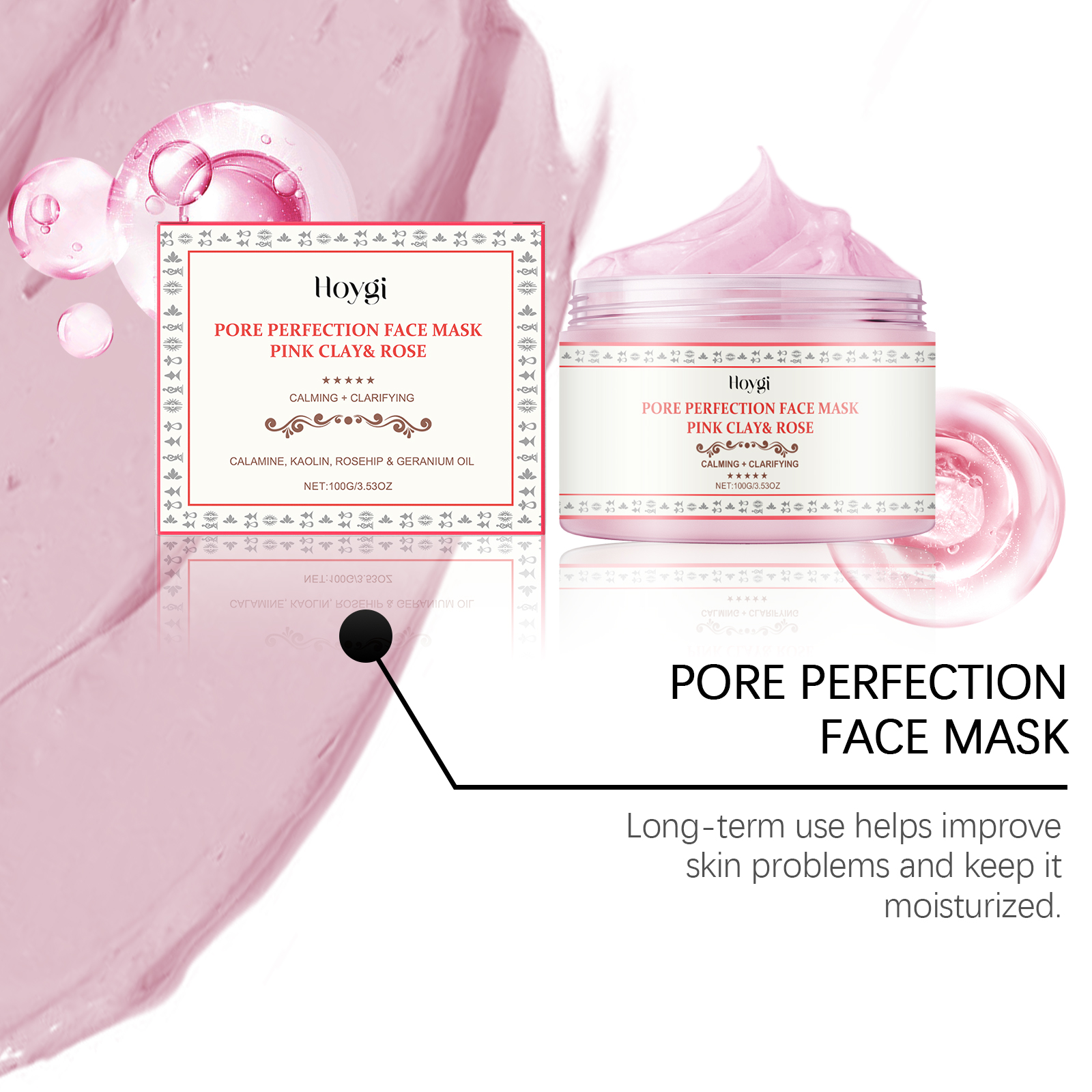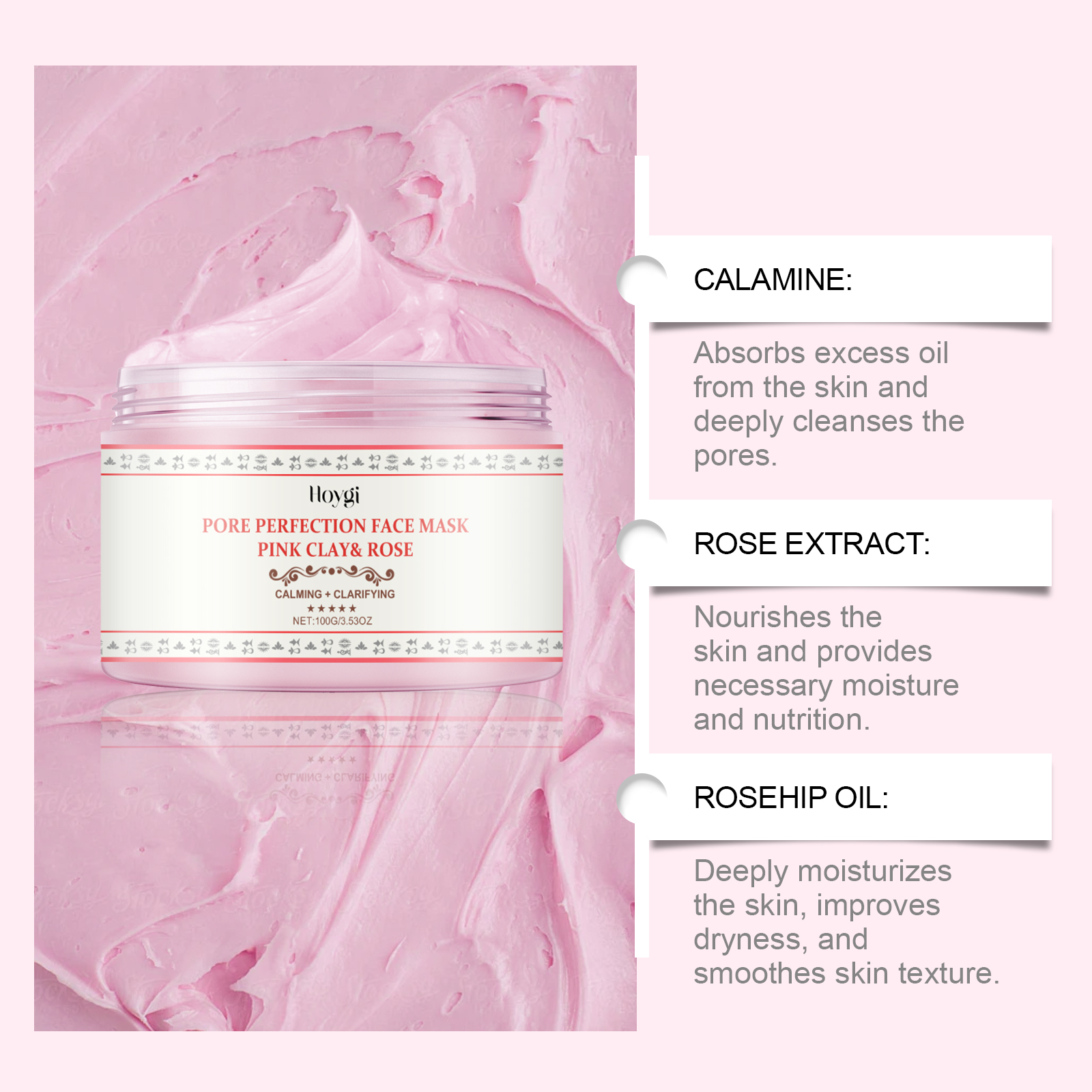 Our rose facial mask contains rose extract, rosehip oil, geranium essential oil. It cleans pores, removes impurities, and rejuvenates the skin. The way to use it is simple: clean your face and keep it dry. Apply appropriate amount to face and neck and massage gently in circular motion. Leave on for 5-10 minutes, then wash off with warm water. It can also tighten pores and make skin more delicate and smooth.
