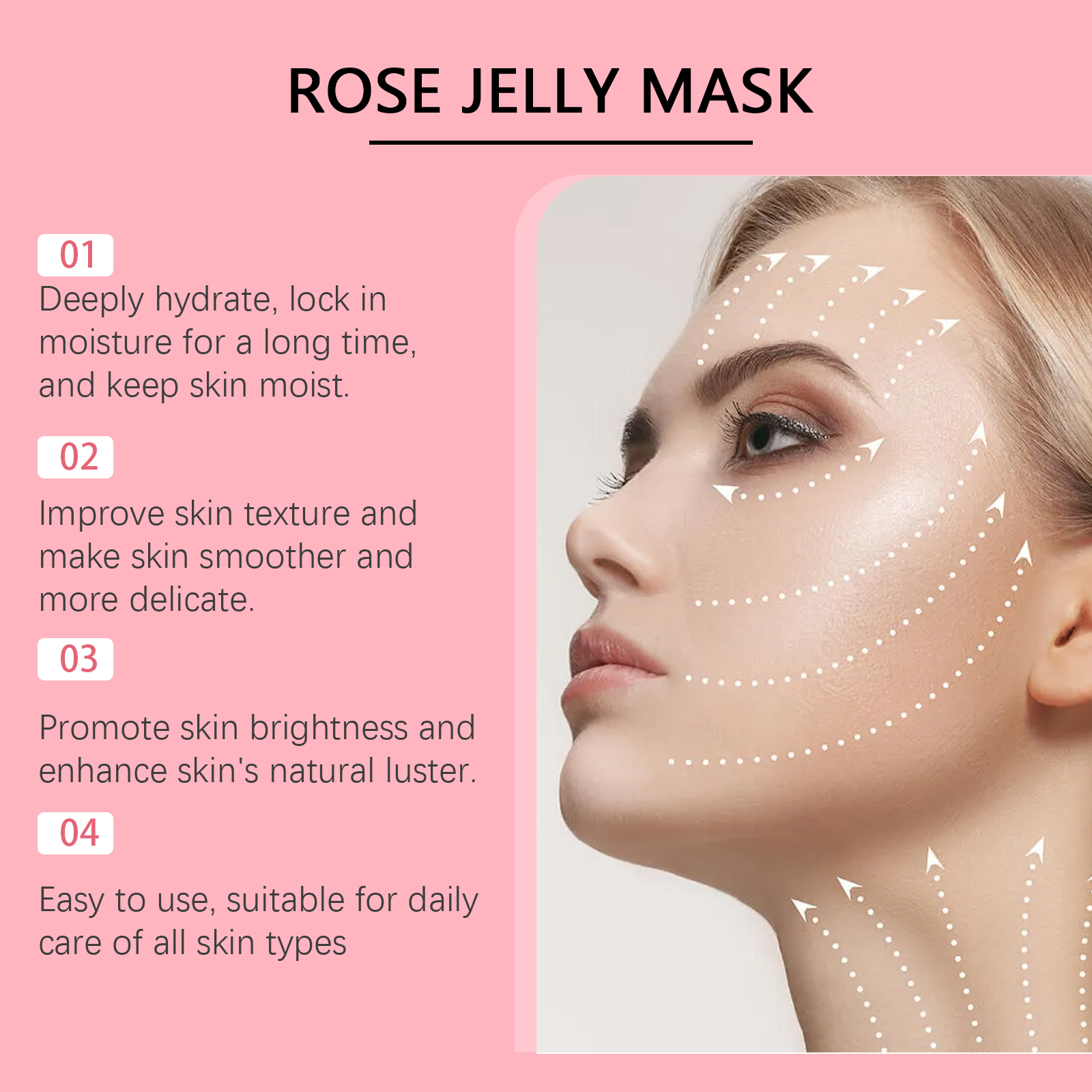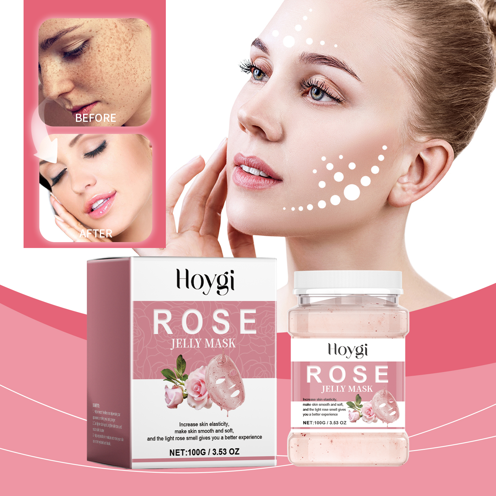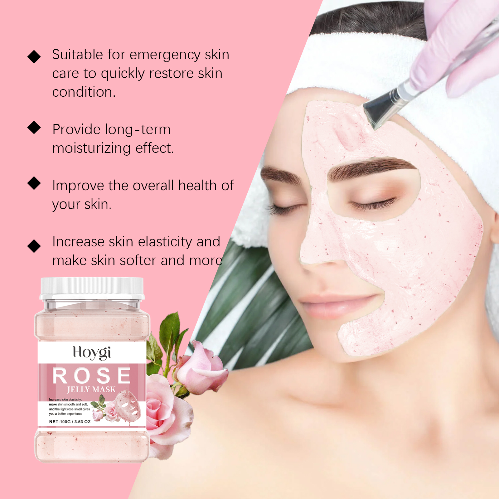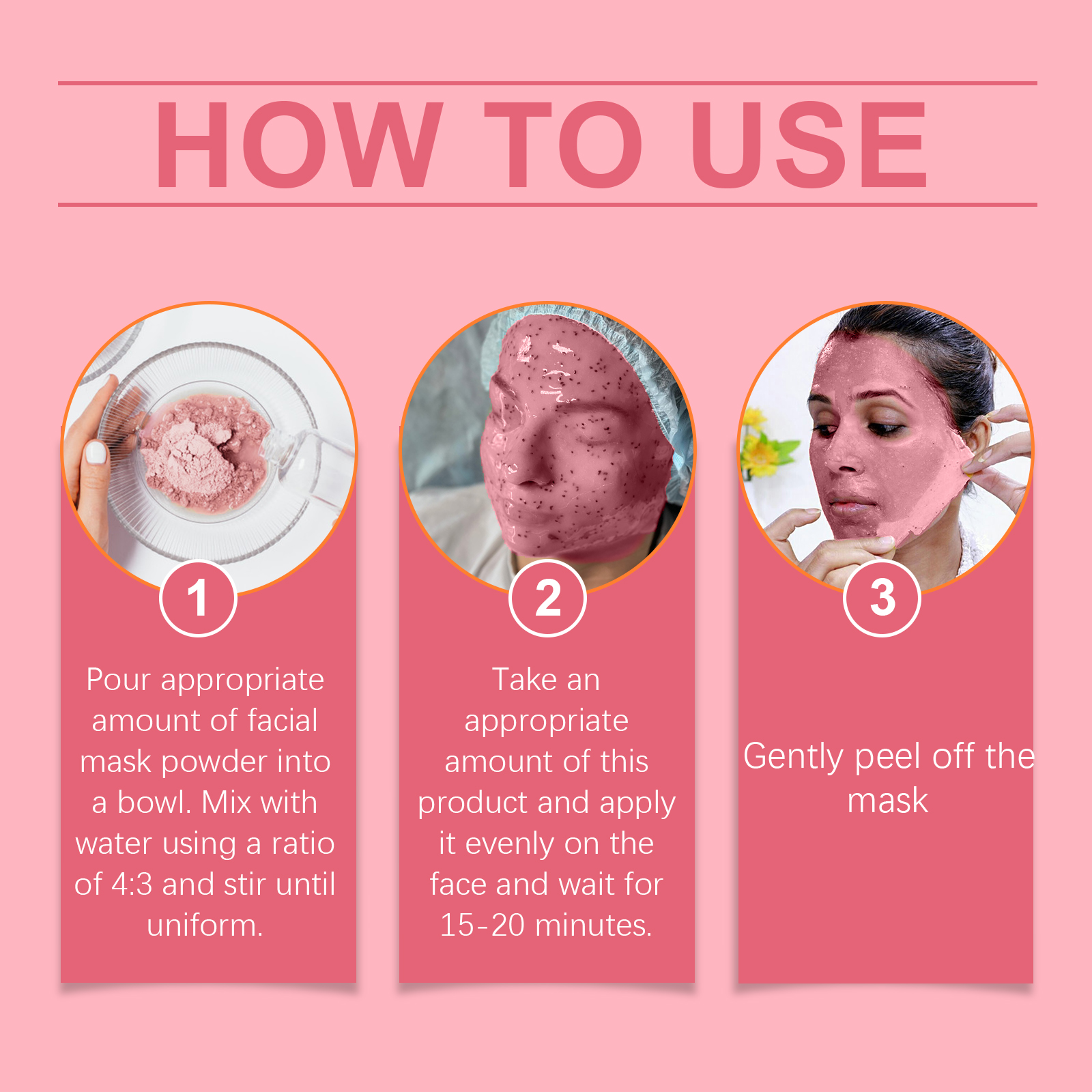 Our Rose moisturizing Mask powder contains pectin, rose extract, nicotinamide. It can form a moisturizing layer, lock in moisture, enhance skin moisture; Helps absorb dirt and impurities and cleans the skin. Enhance skin elasticity, deeply moisturize, improve skin firmness and smoothness. Its use method is very simple: 1. Take the appropriate amount of mask powder into the bowl. Mix with water in a 4:3 ratio and stir well. 2. Usage: Apply appropriate amount to face and wait for 15-20 minutes. 3. Gently peel off the mask. Rose Hydrating Mask Powder helps to restore the skin's natural glow and improve complexion. Easy steps for quick skin care.