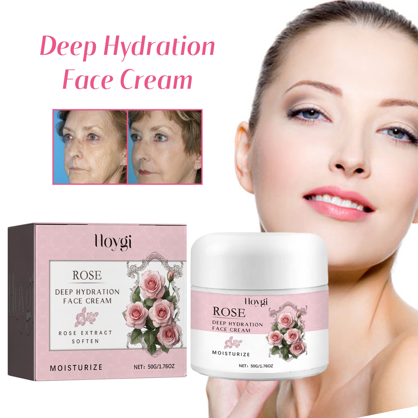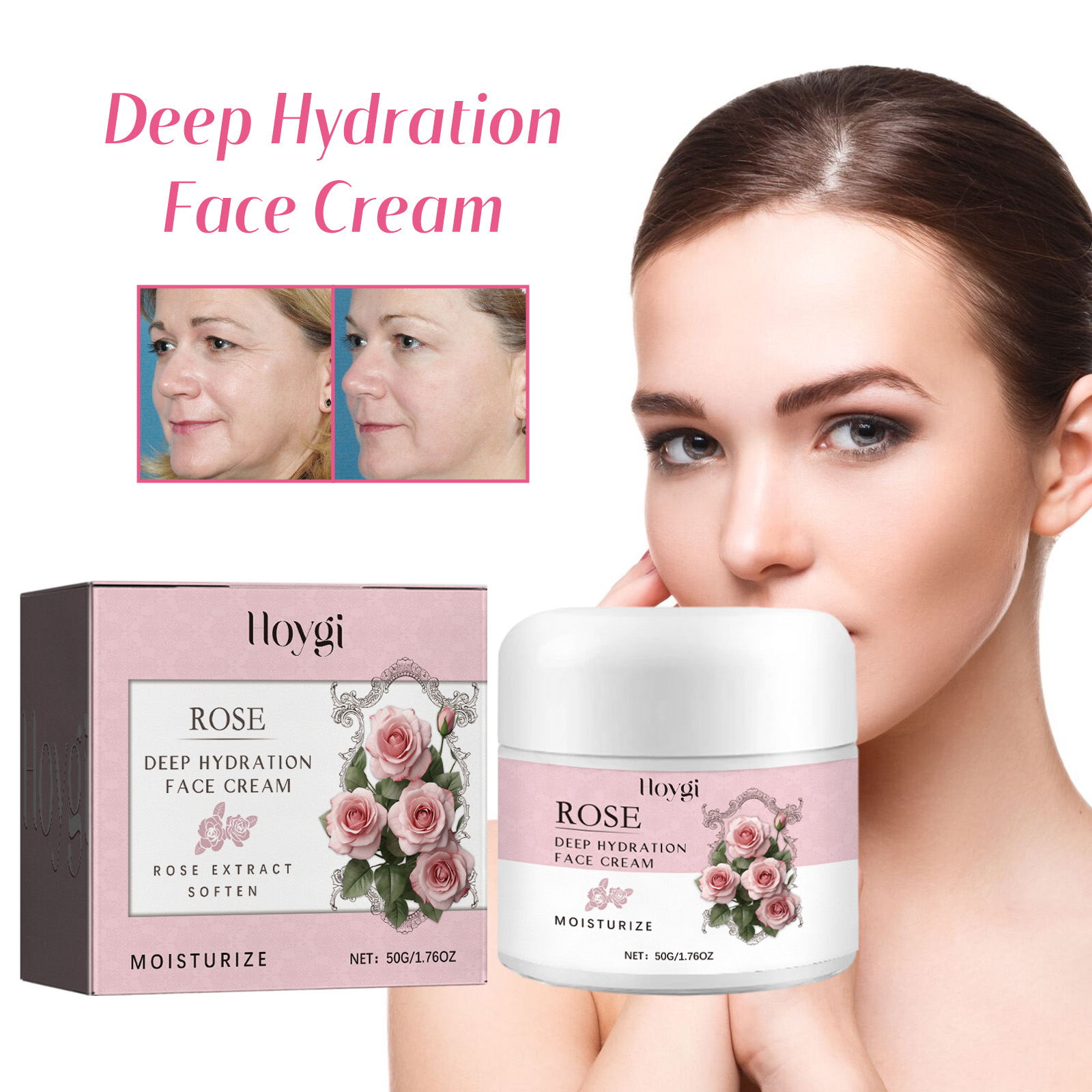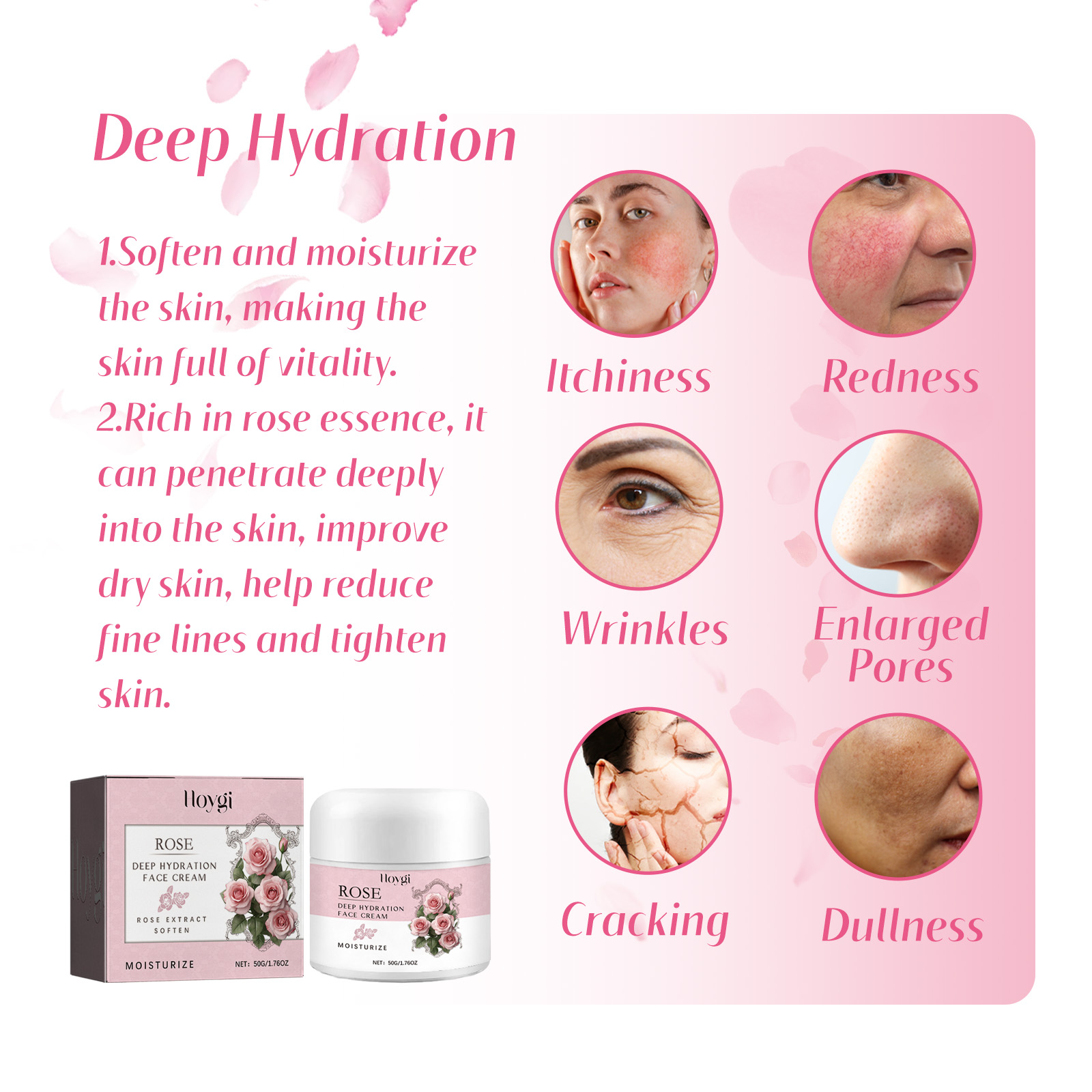 Our rose moisturizing cream contains mineral oil and glycerin. It can 1. Soft and moisturize the skin, make the skin full of vitality; Rich in rose essence, it can penetrate deep into the skin, improve dry skin, help fade fine lines, and tighten skin. Deep hydration, effective against dryness and dehydration, making skin smoother, more delicate, natural glow; Skin tone balance, fine line reduction, soothing and repair. Its use method is very simple: after cleansing, take a proper amount of cream evenly apply to the skin, gently massage until absorbed. Rose Moisturizer deeply hydrates and illuminates your complexion for a balanced, bright complexion; Infuse the vitality of nature to effectively soften and moisturize, leaving your skin rejuvenated and full of vitality; Contains rose essence, light texture, non-sticky, deep penetration and moisturizing, fade fine lines, firm skin, comfortable and beautiful.