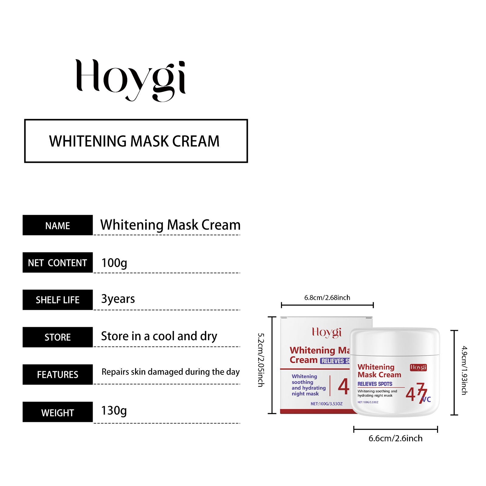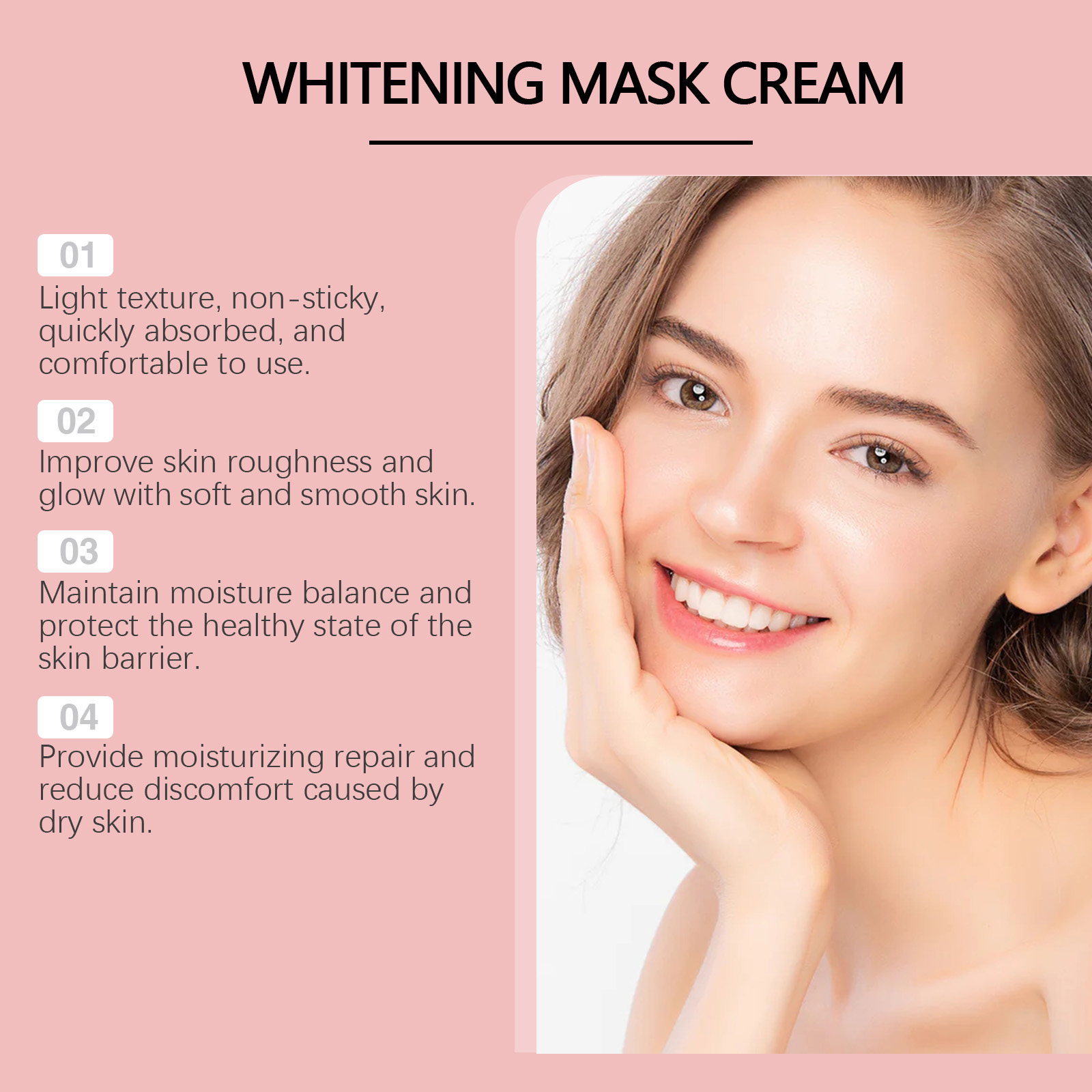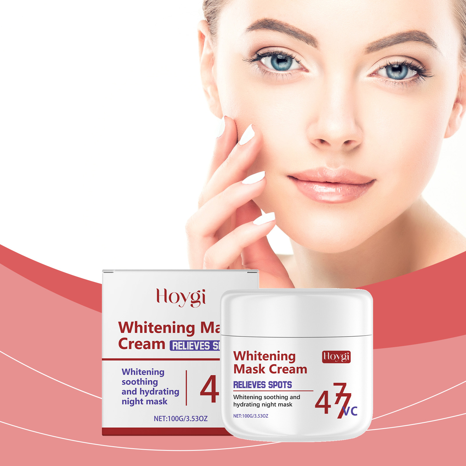 Our soothing and moisturizing Sleeping mask contains hydroxyethylcellulose, niacinamide, Vitamin C (ascorbic acid). It can deeply nourish, release repair power at night, and leave skin hydrated and smooth. Its use method is very simple: after cleansing before going to bed, take appropriate amount of this product evenly spread on the face. When you wake up, wash with clean water. And can help improve the dull skin tone, show the skin luster.