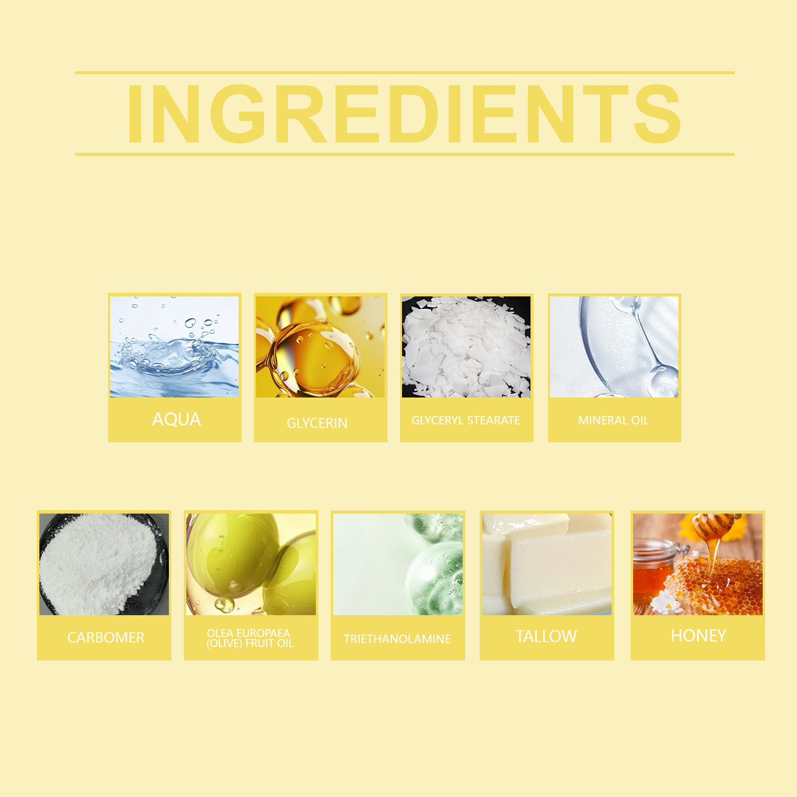 Our tallow honey moisturizer contains olive oil, tallow and honey. It penetrates the surface of the skin to help relieve dryness and keep skin hydrated. The way to use it is simple: clean your face and keep it dry. Apply appropriate amount to face evenly. Massage gently until absorbed. And the use of mild formula design, relieve skin discomfort, bring a relaxed and pleasant experience.