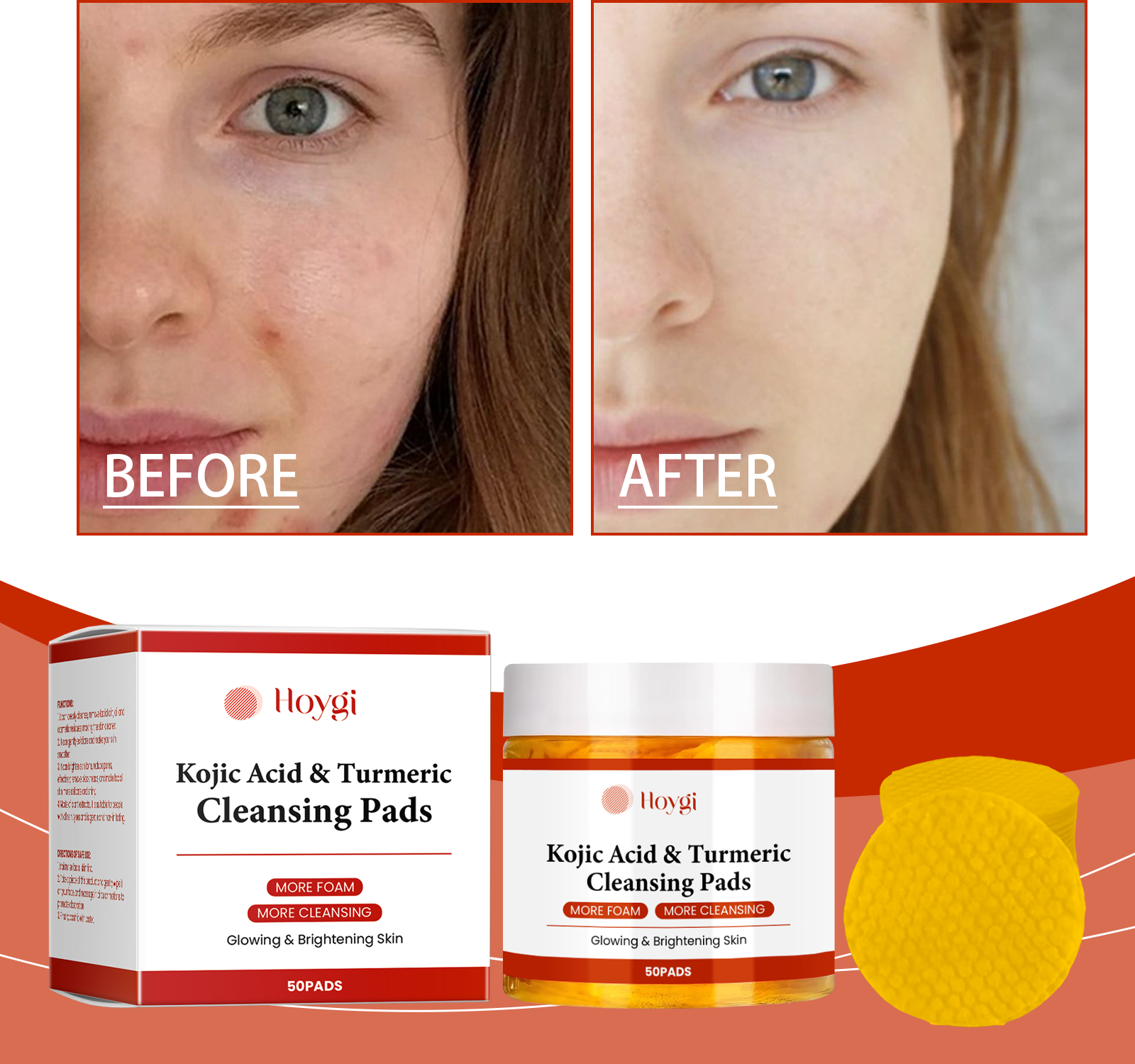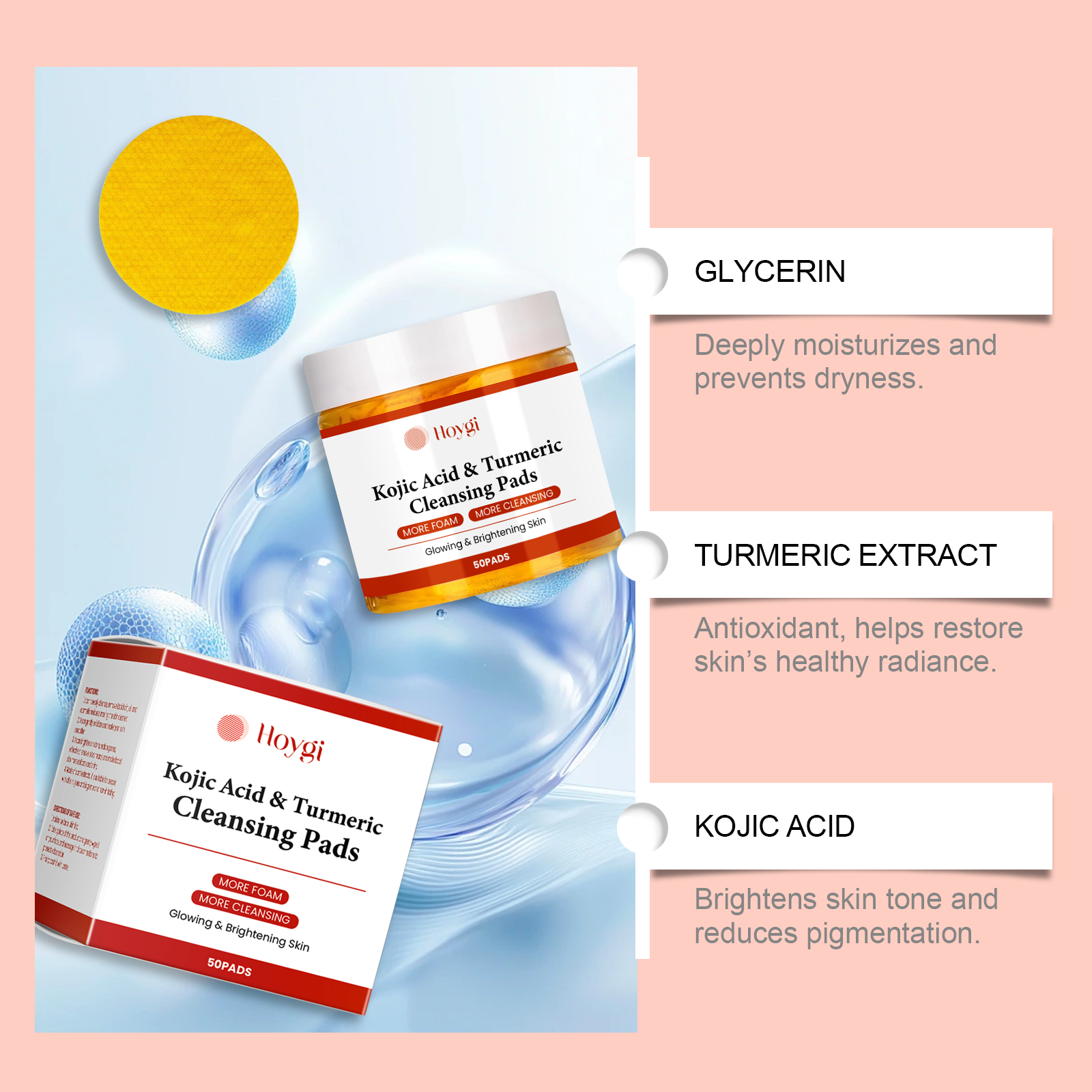 Our turmeric exfoliating cleanser contains papaya extract, lemon extract. It deeply cleans pores and removes excess oil. The way to use it is simple: first moisturize the facial skin. Take a piece of this product gently rub on the face, and give circular massage to promote absorption. Finally, rinse with water. And can effectively lighten the skin color, even the skin color, fade the stain, contains glycerin ingredients, keep the skin moisture, prevent drying.