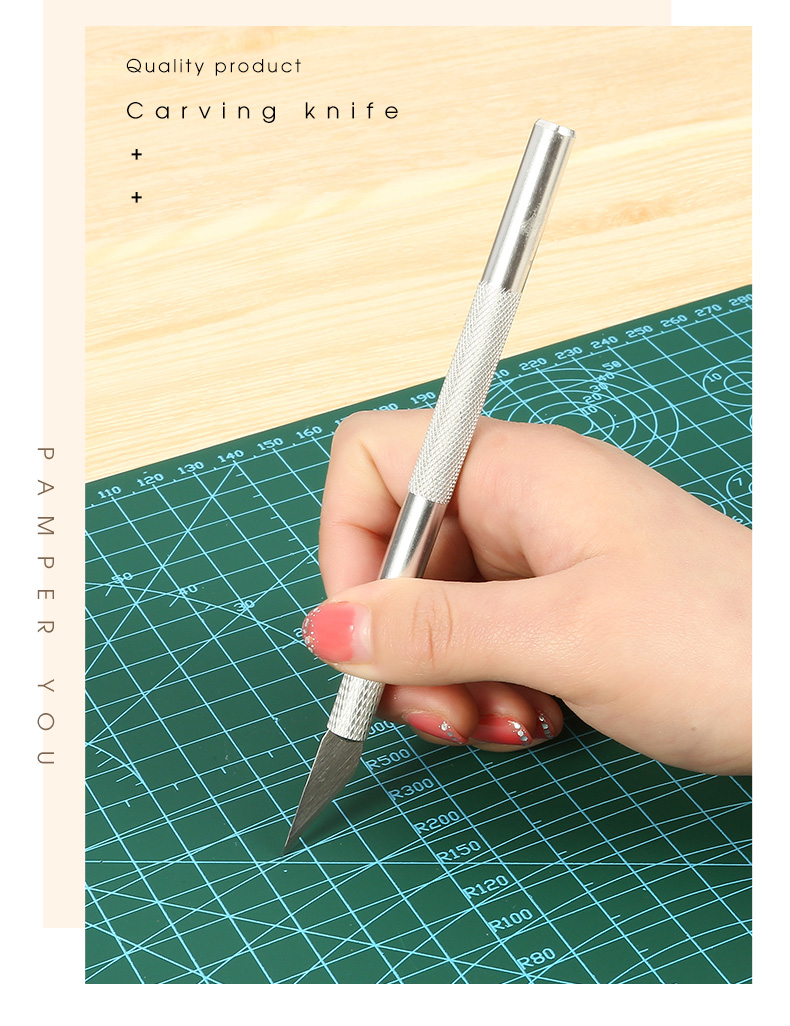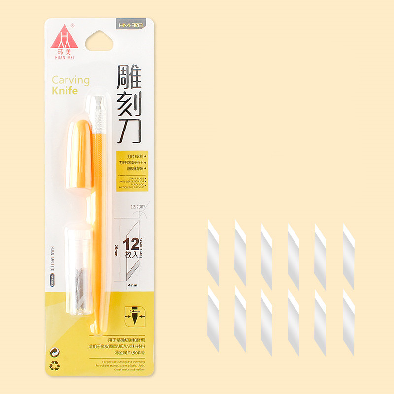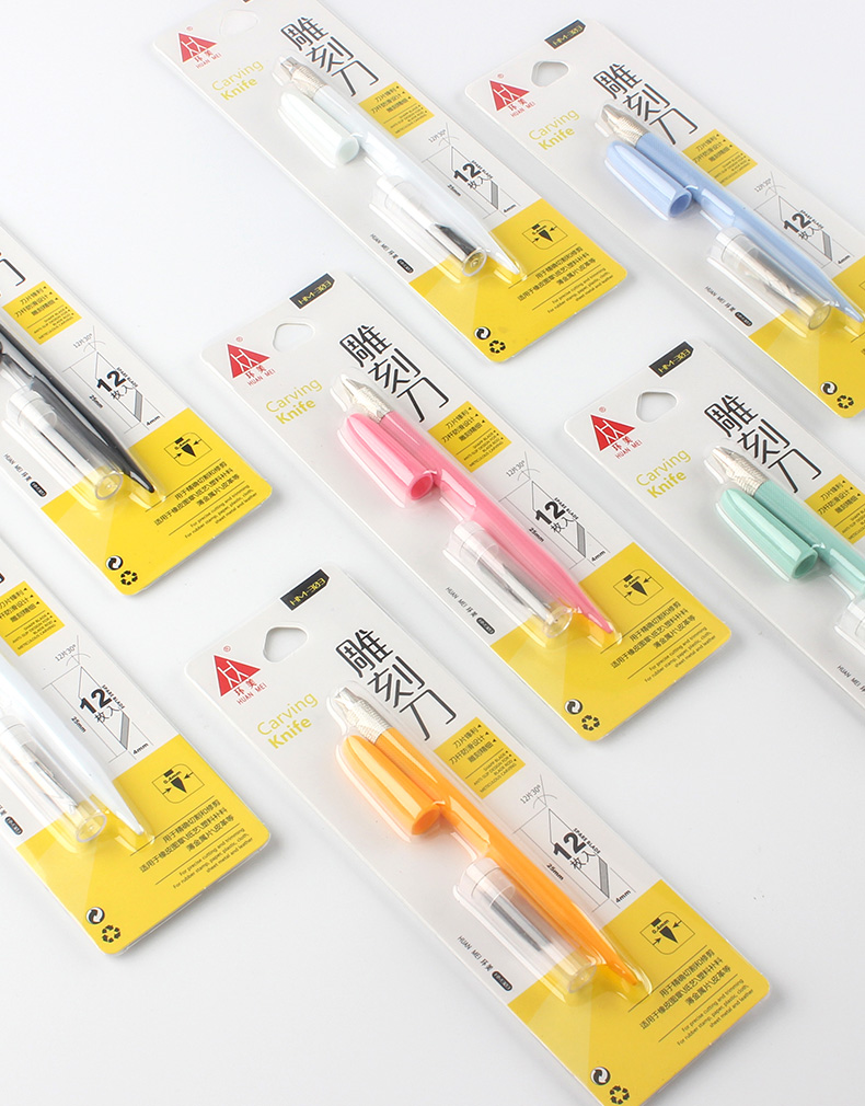 Item No.: HM Carving Knife Color Classification: Aluminum Rod Carving Knife with 6 Blades Black Small Carving Knife with 12 Blades Yellow Small Carving Knife with 12 Blades White Small Carving Knife with 12 Blades Mint Green Small Carving Knife with 12 Blades Pink Small carving knife with 12 blades Sky blue small carving knife with 12 blades