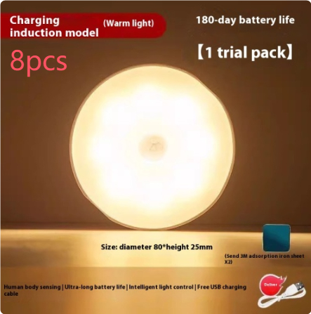 Light color: round small night lamp 80 * 25mm white light, round small night lamp 80 * 25mm warm light
