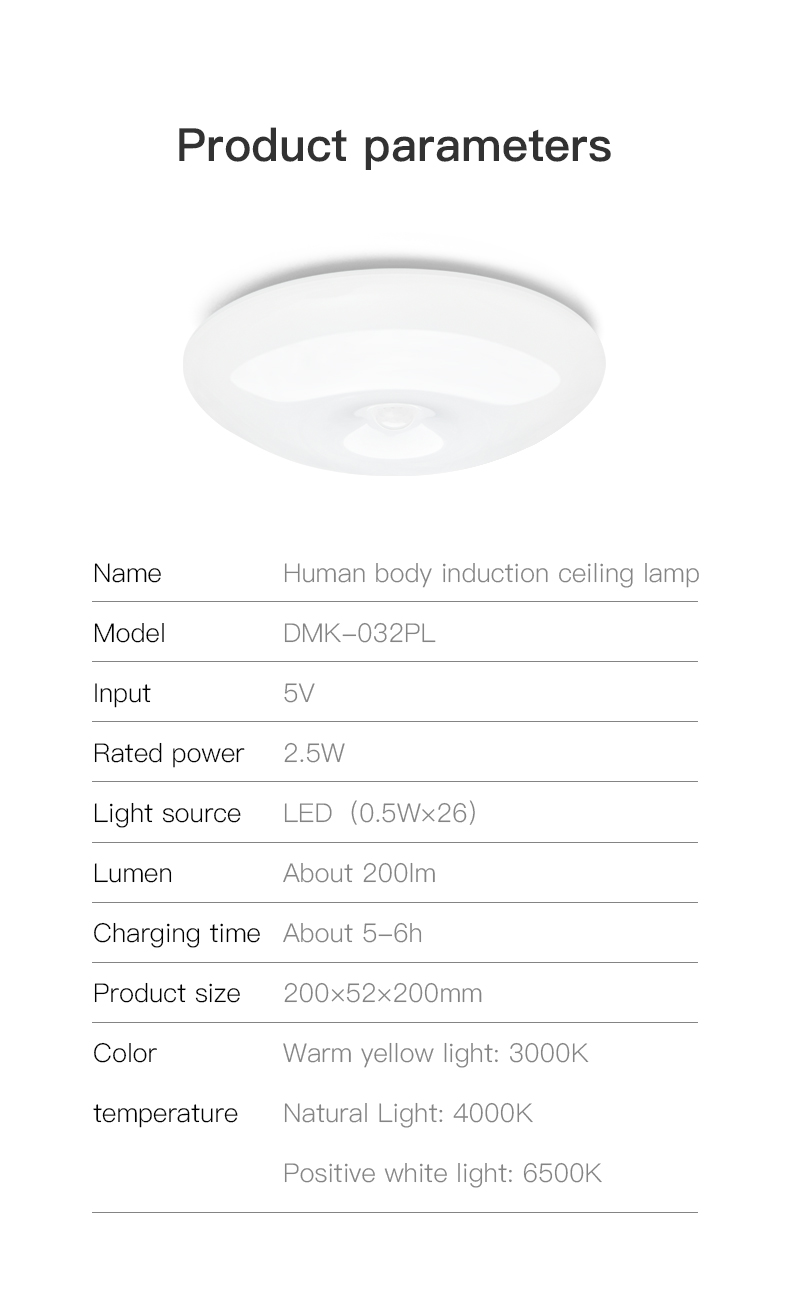 Human Induction Ceiling Lamp Infrared Garage Lamp Cloakroom Balcony Lamp Rechargeable For Easy Installation