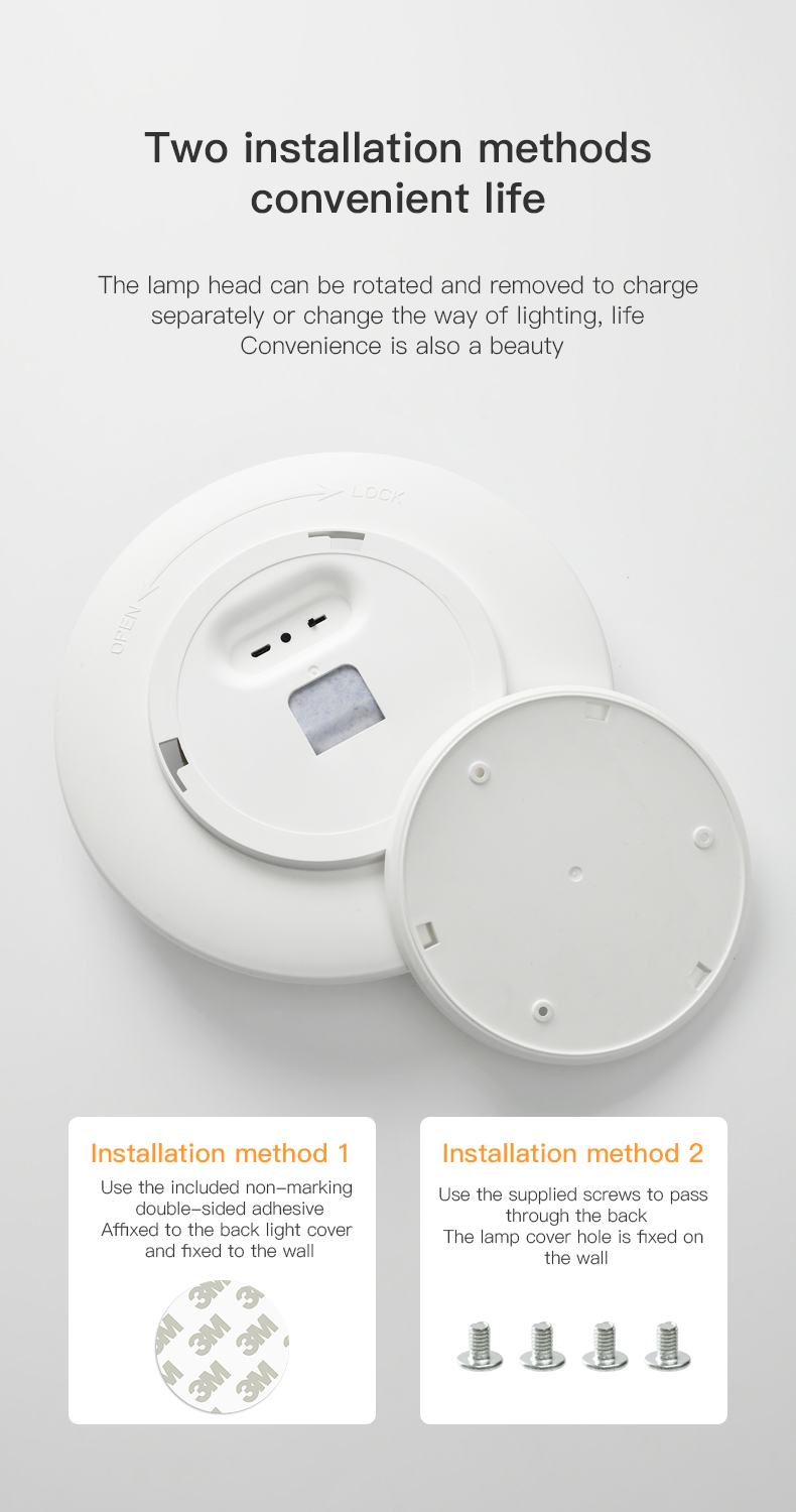 3. No drilling is required. Double-sided tape is easy to install. The lamp holder can be disassembled and charged by rotation,