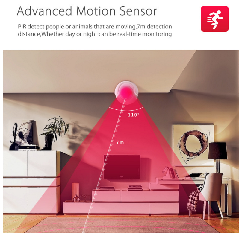 1.Advanced Motion Sensor,PIR detect people or animals that are moving,7m detection distance,whether day or night can be real-time monitoring.