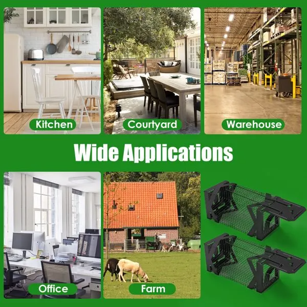 This humane mouse trap cage is an effective solution for catching small rodents like mice, voles, and hamsters, but not larger animals like squirrels. No electricity, harmful chemicals or poisons, making it safe for pets and children. Made with sturdy 1.15mm rust-resistant metal wires and corrosion-proof coating, it's suitable for indoor and outdoor use in homes, gardens, warehouses, and commercial spaces.