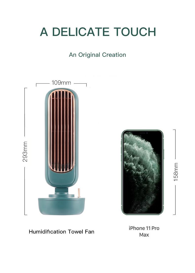 1.This portable bladeless tower fan with spray humidification is not only a desktop spray mist fan but also a home decoration. It features a humanized design, and the microfiber leather hand strap makes it much more convenient to carry.