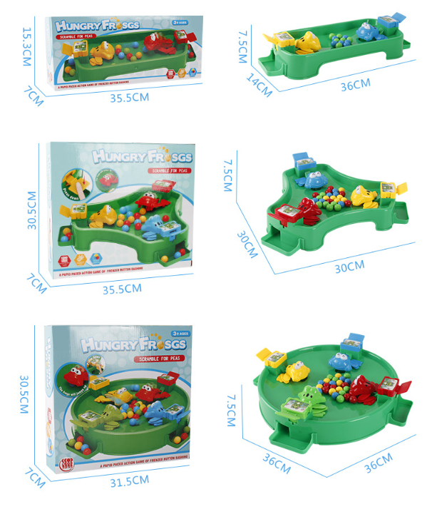 • Three Two One start! Find the beans in the plate and press the button to see whose frog can eat more beans,2 or 3 players can be involved with this exciting table game.