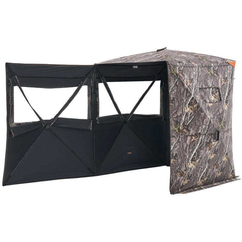 Resistant to Harsh Weather: A no-hole lamination process with heat-sealed cotton can keep the tent insulated and cold-resistant. Our upgraded all-aluminum hub use a sturdy structure. The hunting ground blind is made of 150D waterproof fabric, rain and wind-resistant. Solid fiberglass tubes are detachable. Reflective fabric can be attached