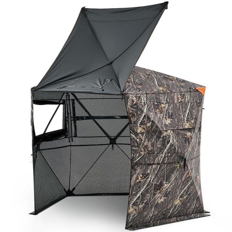 Silent Hunting Upgrade: The hunting blind uses a silent method with an internal sewn steel bar structure. The top-zipper door reduces noise for easy entry and exit. The windows and silent slide rails offers 288° visibility options easy tracking
