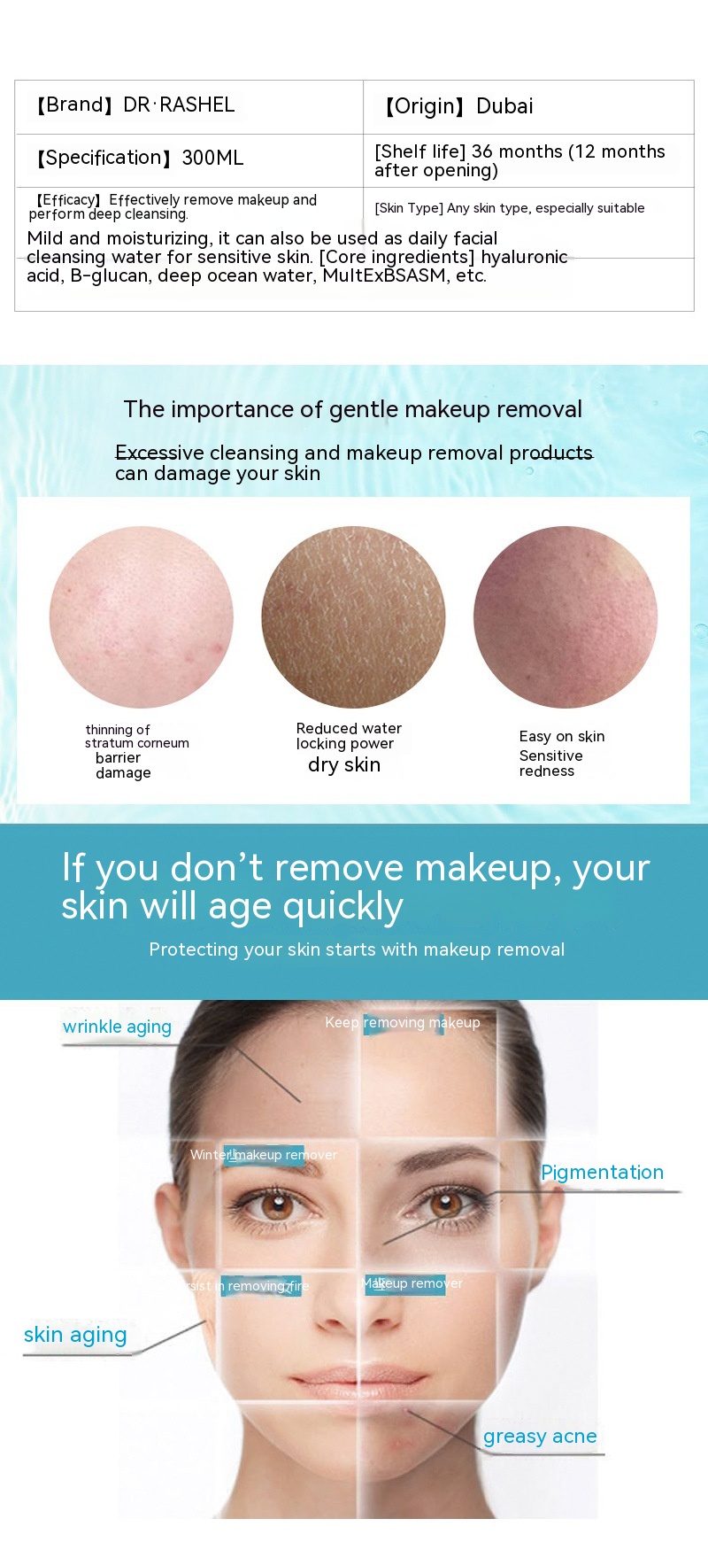 Skin type: Any skin type, especially suitable for mild moisturizing. It can also be used as a daily facial cleanser