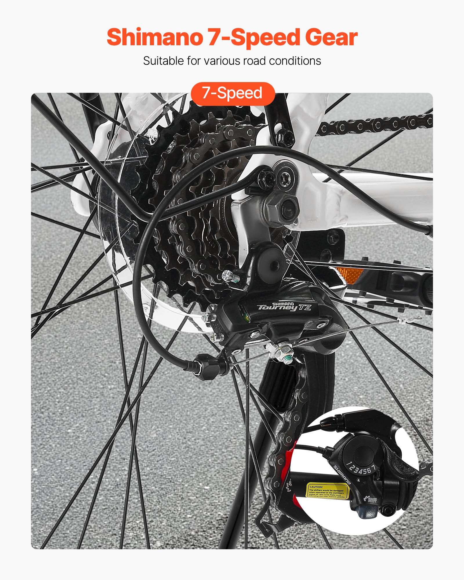 7-Speed Shimano Gear: Featuring a 7-speed gear system, the lightweight aluminum frame hybrid bicycle provides smooth, accurate shifting through a simple thumb shifter, providing a seamless and stable riding experience on various terrains