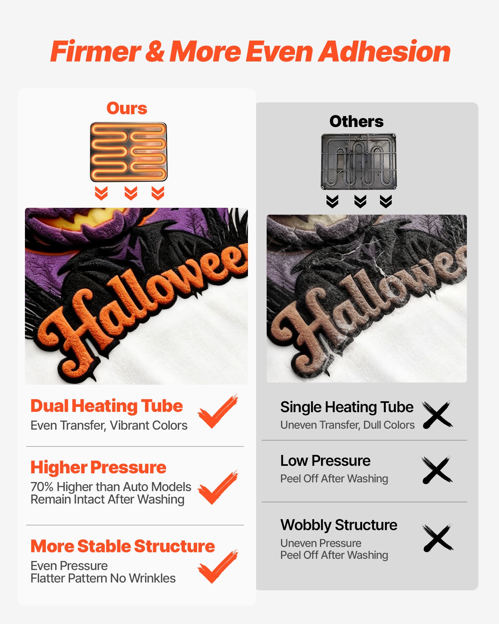 Superior Heat Pressing: The 15 x 15 in heat press features 70% higher pressure than automatic models, surpassing even traditional ones. Its new high-stability design ensures even pressure distribution for superior results and clearer long-lasting patterns
