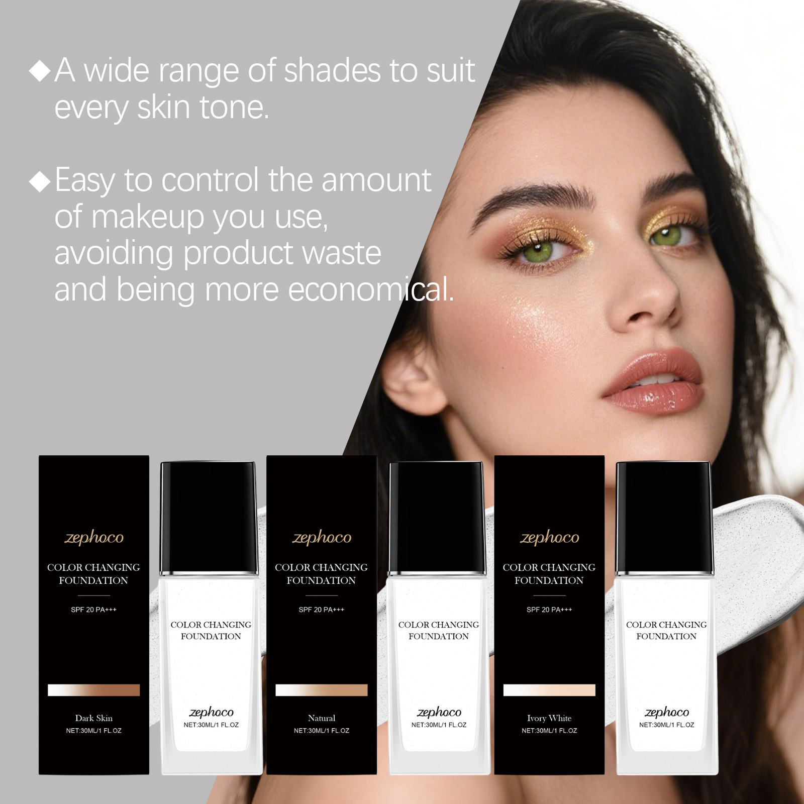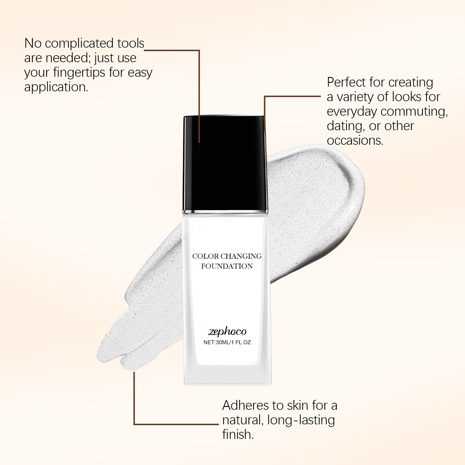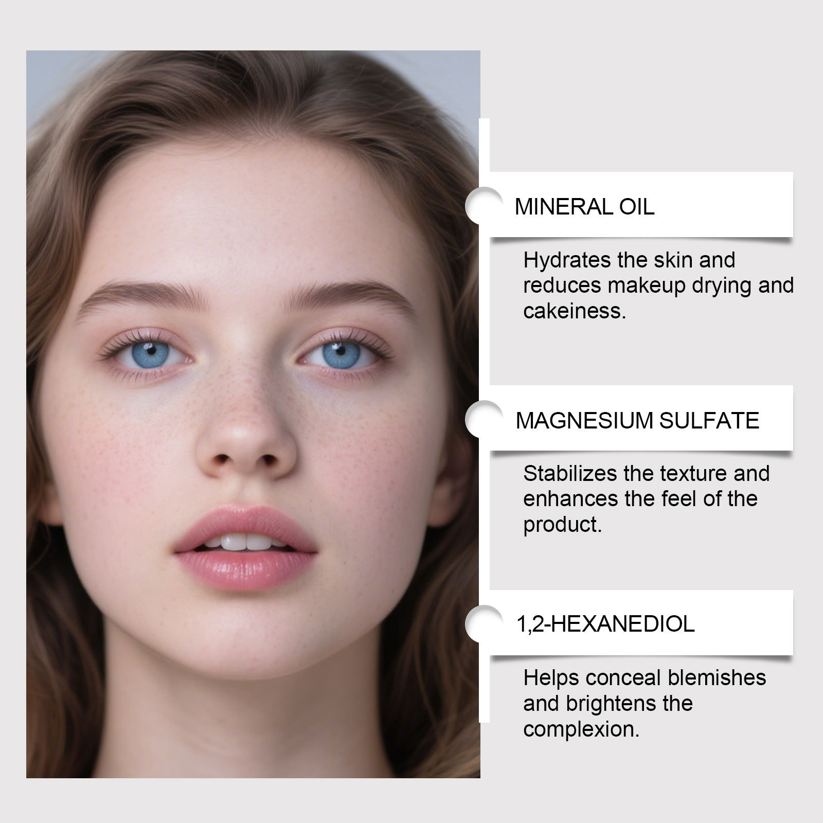 Ingredients: water, propylene glycol, mineral oil, CI 77891, cetyl PEG/PPG-10/1 polydimethylsiloxane, magnesium sulfate, trimethylsiloxy silicate, magnesium stearate, 1,2-hexanediol, CI 77492, CI 77491.