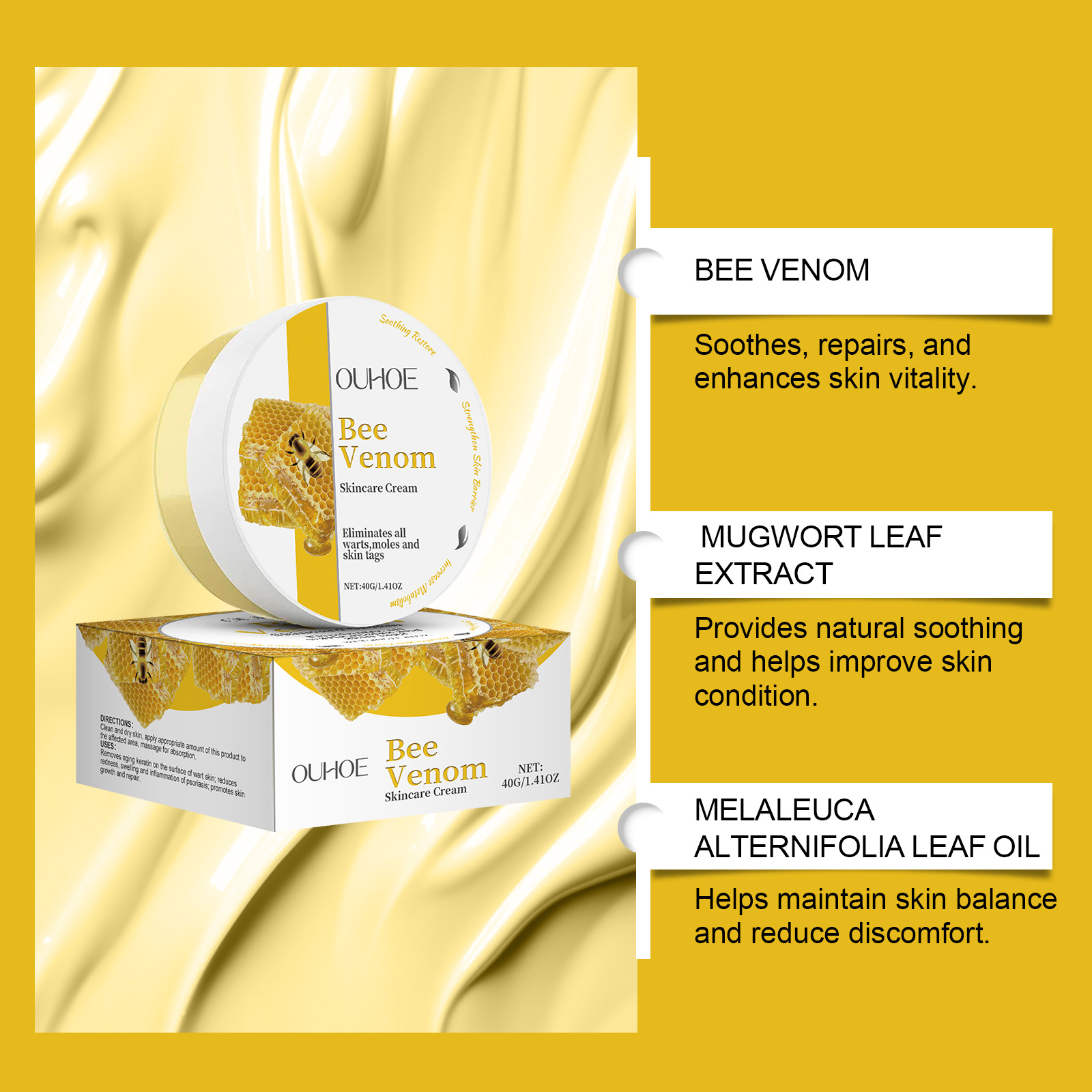 Product Ingredients: activity: bee venom, moxa leaf extract, alternate leaf cajeput leaf oil, spicy peppermint oil; Inactive: water, glycerin, cetyl stearate, Glyceryl stearate, carbomer, triethanolamine, salicylate, allantoin