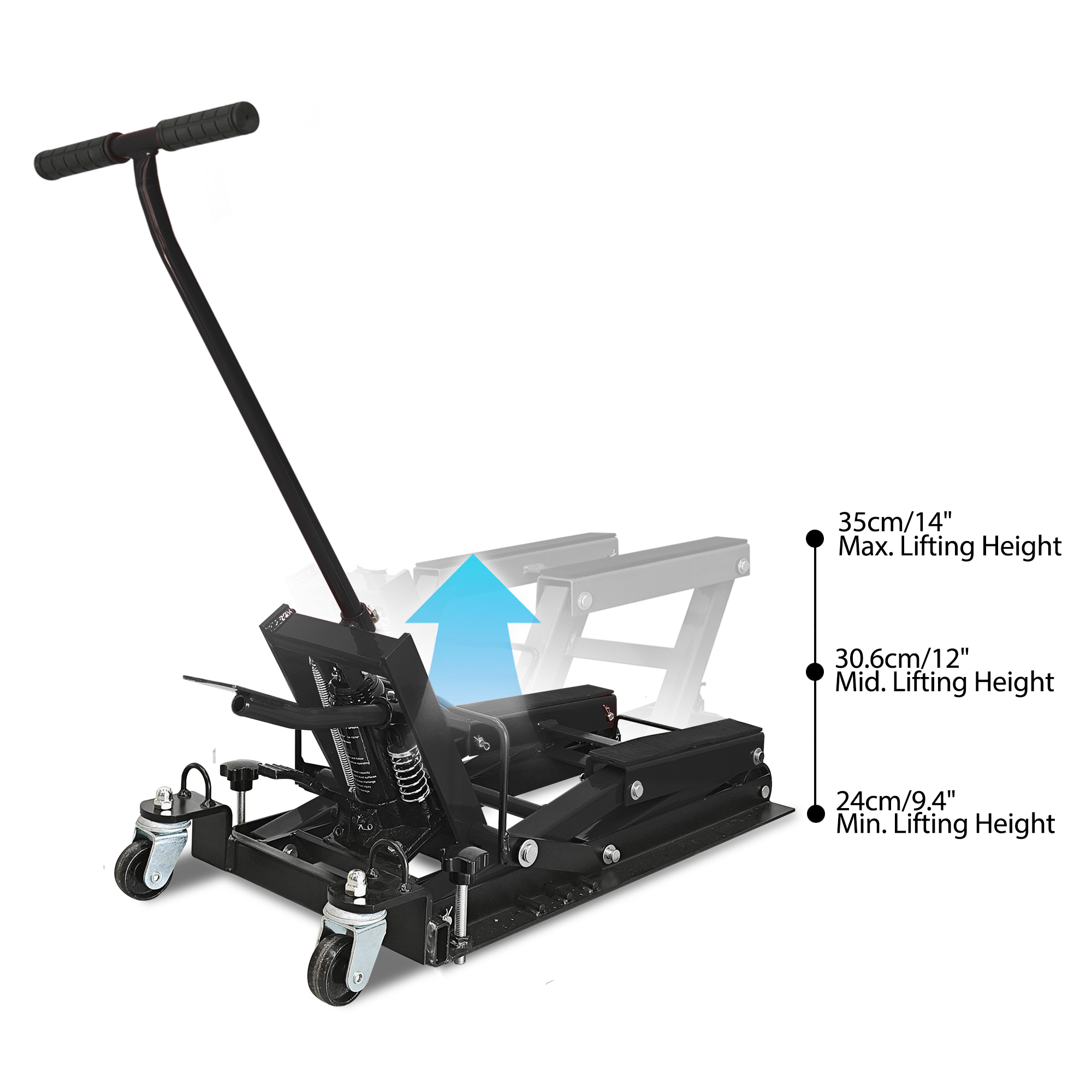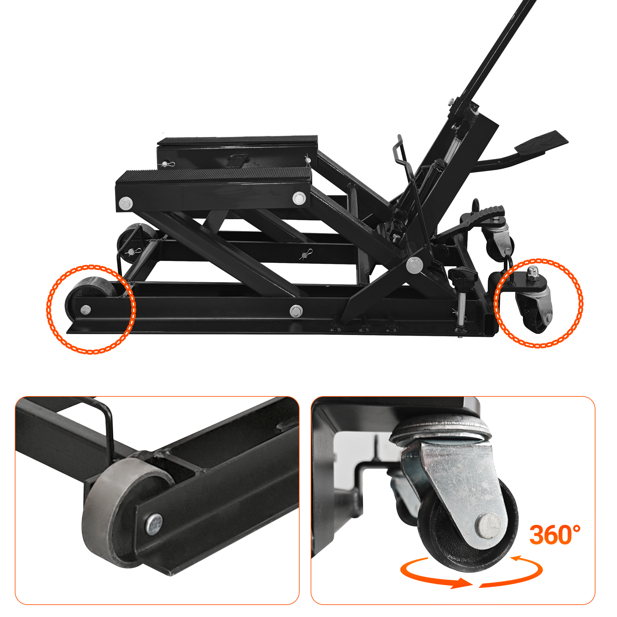 Product Name:Hydraulic Motorcycle Lift Jack, 1500 LBS Capacity, ATV Scissor Lift Jack Portable Motorcycle Lift Table with 4 Casters, Hydraulic Foot-Operated Hoist Stand for Motorcycle ATV UTV Powersports, black