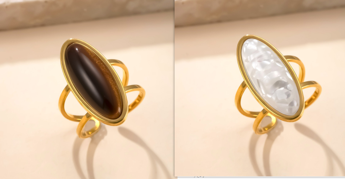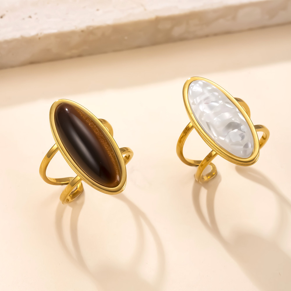 Hydraulic Oval Natural Stone Stainless Steel Ring Simple
