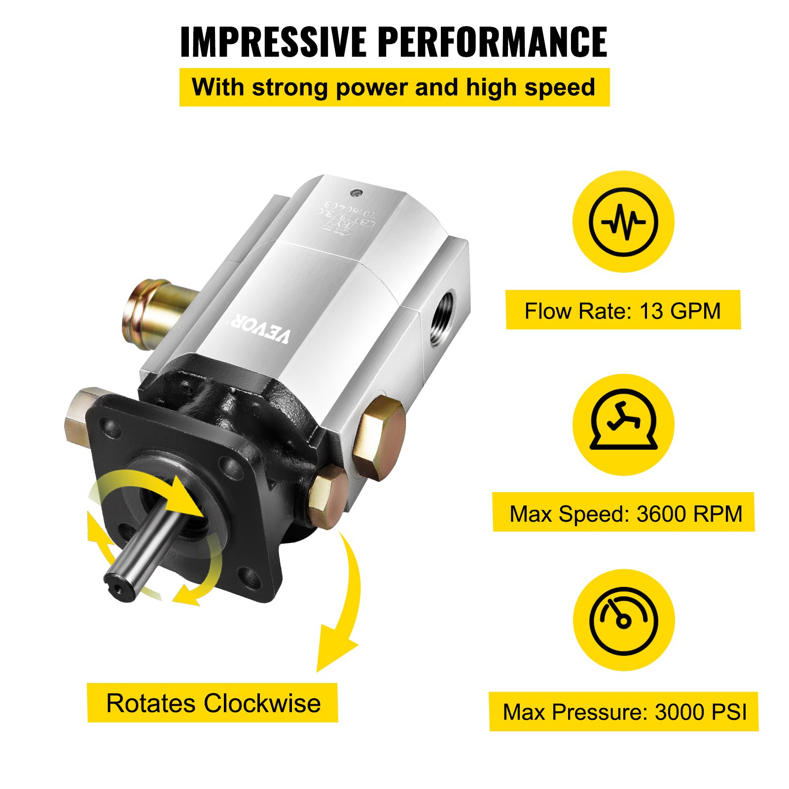 Hydraulic Wood Splitter Pump 3000 PSI 2 Stage Log Splitter Pump 13 GPM, Hydraulic Gear Pump 3600 RPM Aluminum Log Splitter Pumps 1/8' Keyed Shaft For Gas Log Splitters/Hydraulic Power Units