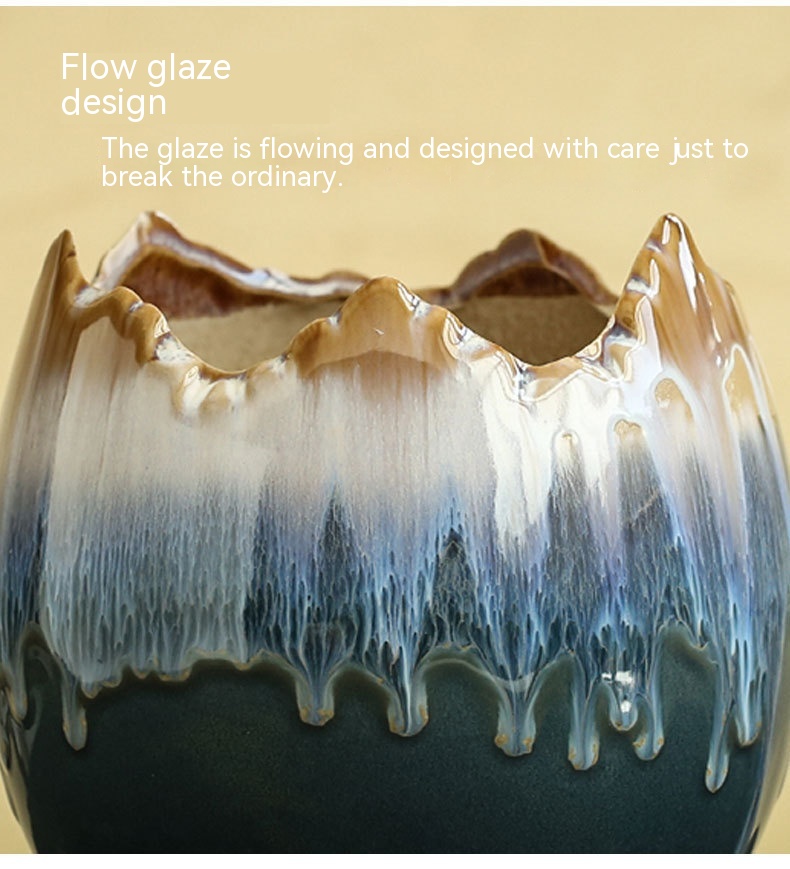 Specifications: XYD notch egg shell cans-green flow glaze (no hole),XYD notch egg shell cans-Brown (no hole),XYD notch egg shell cans-gradient flow glaze (no hole)