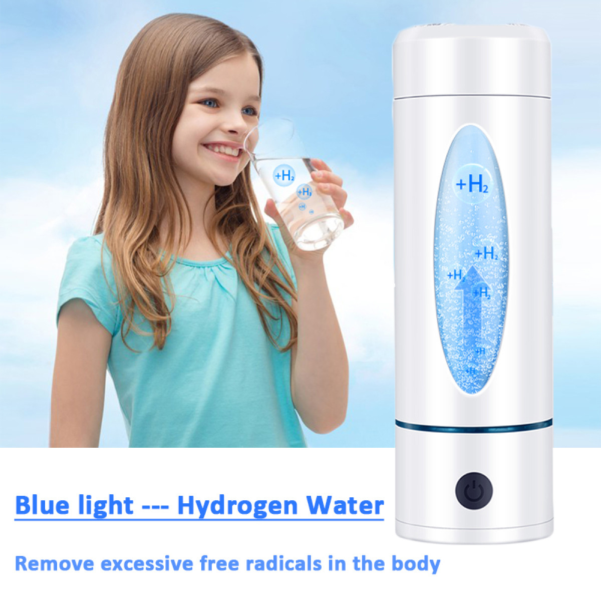 Mode 1: Blue light-produce hydrogen-rich water. Add water to the cup and press the generate button. Click, drop one-
