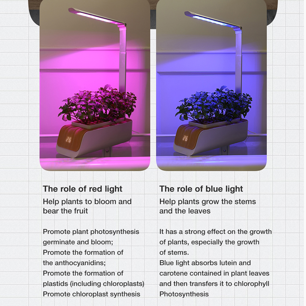 1. Click on the growth lamp and turn on the red light once. Click on it for the second time to turn on the blue light. Click on it for the third time to turn on the red and blue lights. Click on it for the fourth time to turn on all the color lights. Click on it for the fifth time to turn off all the color lights( 16 hours work + 8 hours sleep)