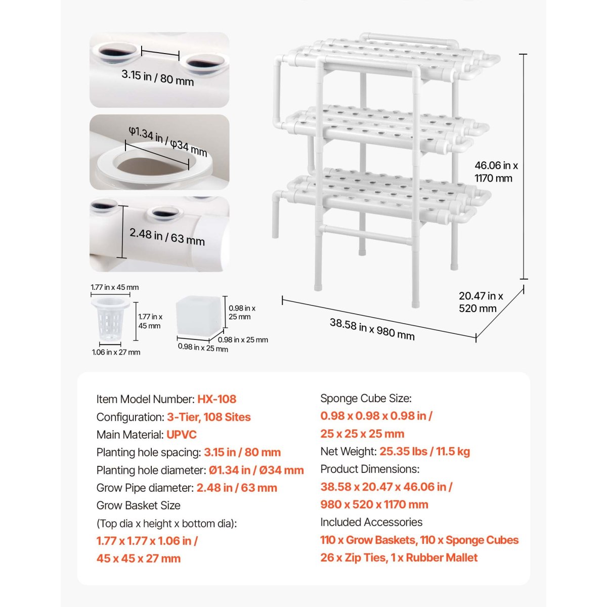 Hydroponics Growing System Kit, 3-Tier 108 Sites UPVC Pipe Hydroponic Grow Kit With Timed Irrigation, Thickened Hydroponic Pipes, Indoor Home Garden Vegetable Planting Grow Kits For Fruit Herb