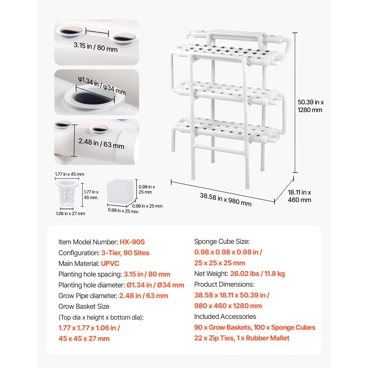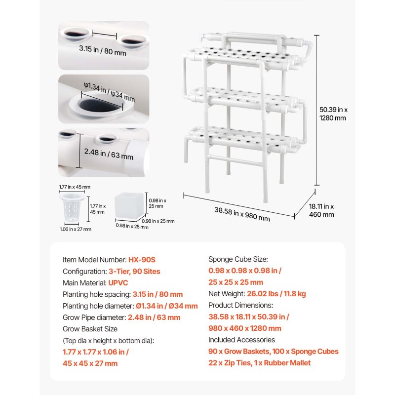 High-Yield, Premium Quality: The 3-tier hydroponic growing pipes with 90 planting sites, promote plant growth. It maximize space compared to soil cultivation. Cleaner, more sustainable, and ideal for growing lettuce, fruits, and flowers at home, greenhouses
