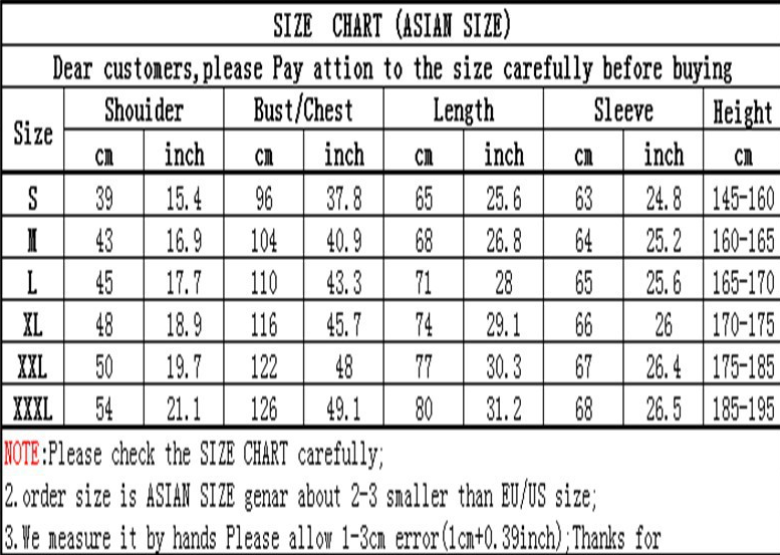 1. Asian sizes are 1 to 2 sizes smaller than European and American people. Choose the larger size if your size between two sizes. Please allow 2-3cm differences due to manual measurement. 2. Please check the size chart carefully before you buy the item, if you don't know how to choose size, please contact our customer service. 3.As you know, the different computers display colors differently, the color of the actual item may vary slightly from the following images.