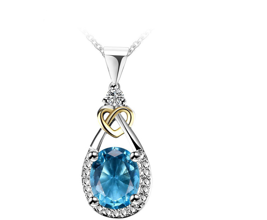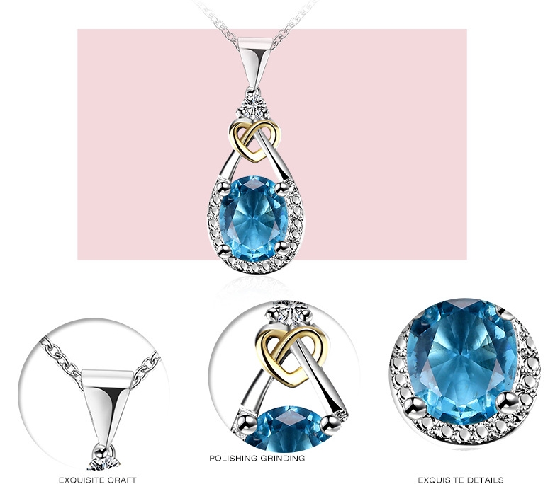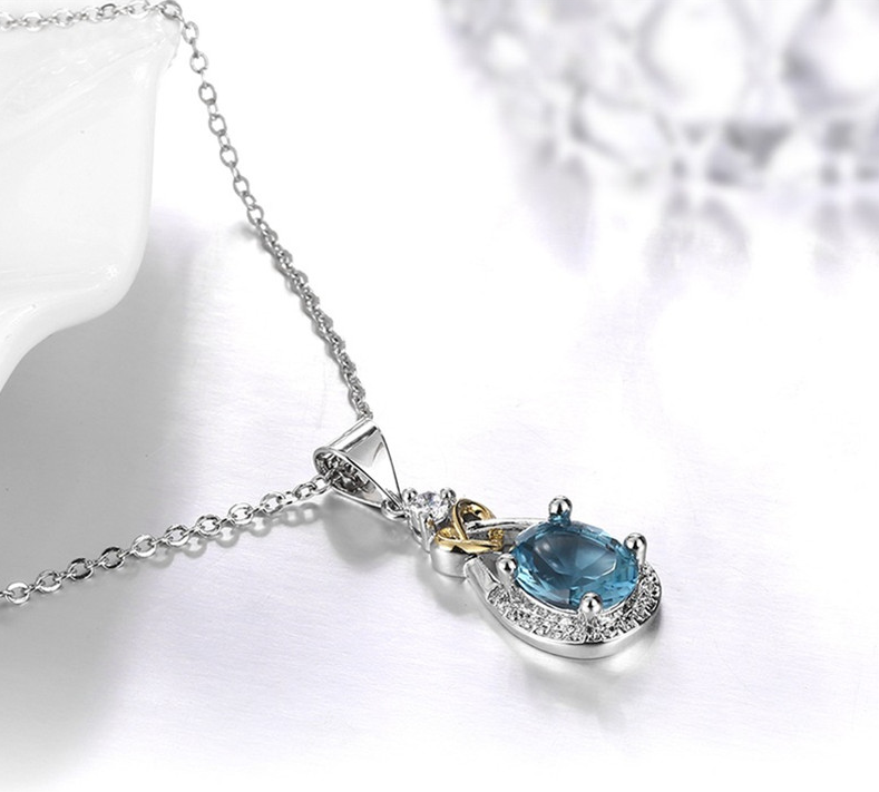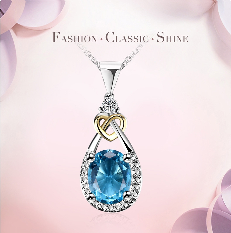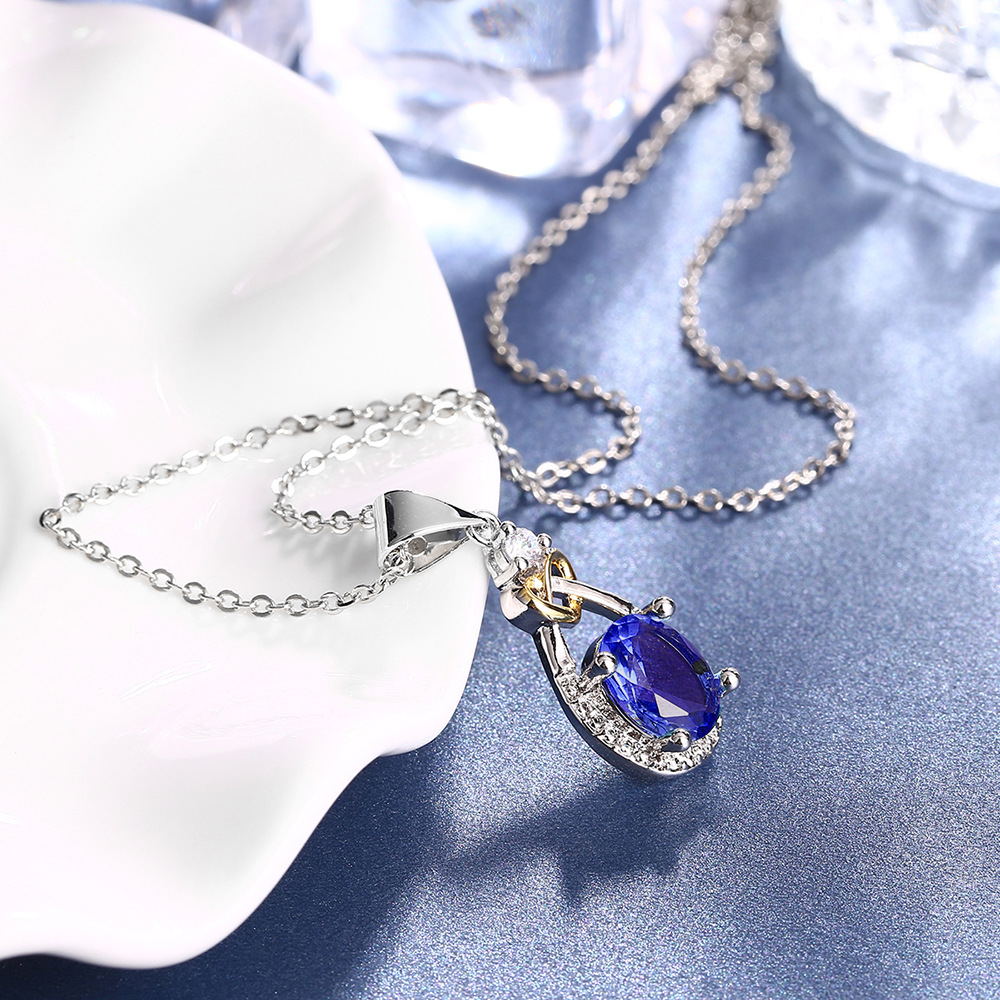 I & zuan Hangers Vrouwen Voor Bruiloft 925 Sterling-zilver-Blue Oval Stone Party Kettingen Fijne sieraden N101