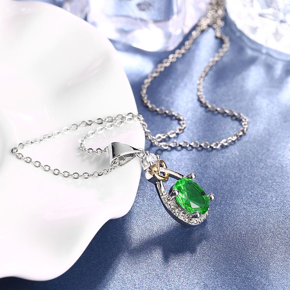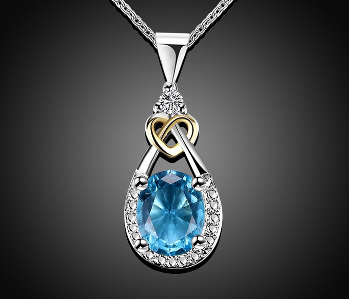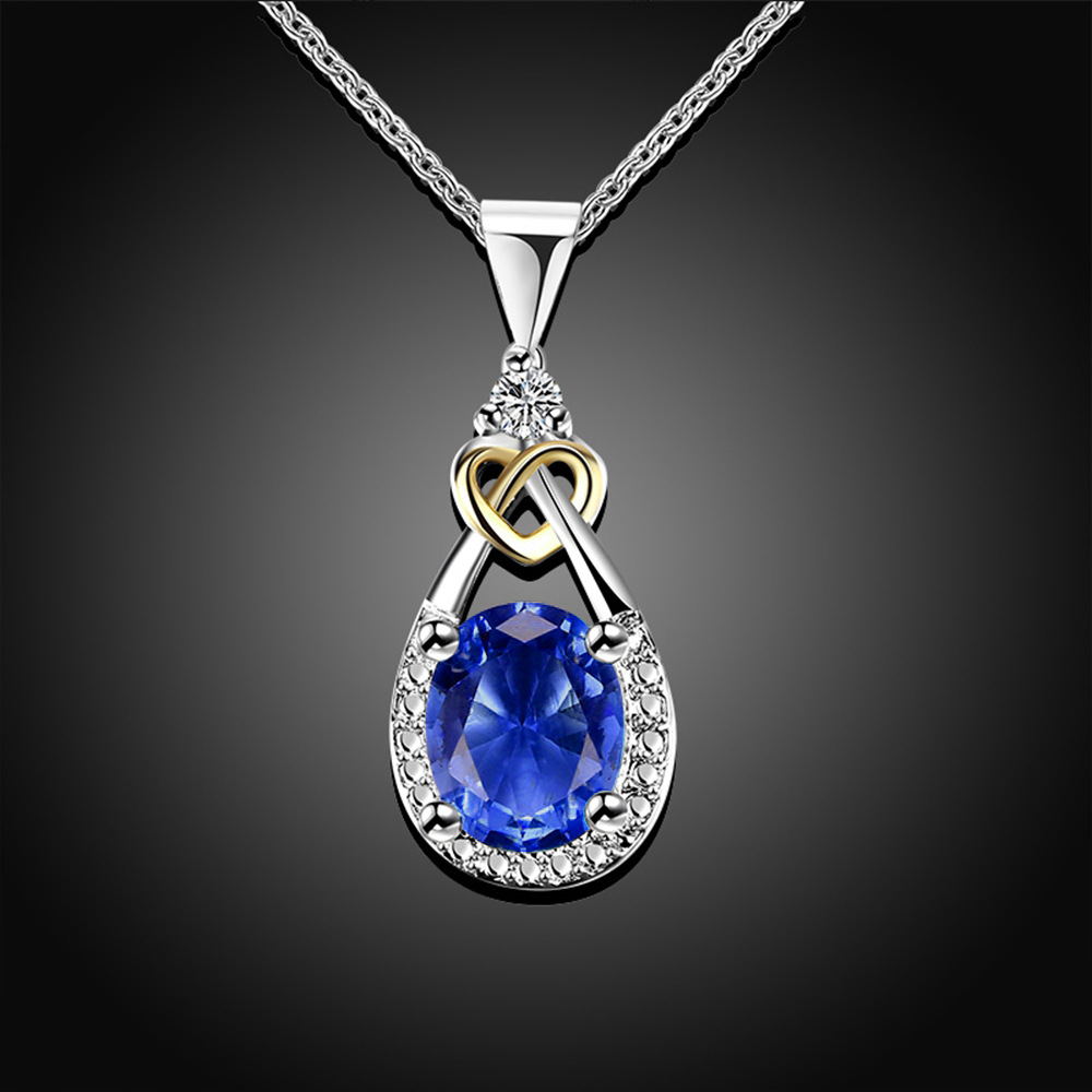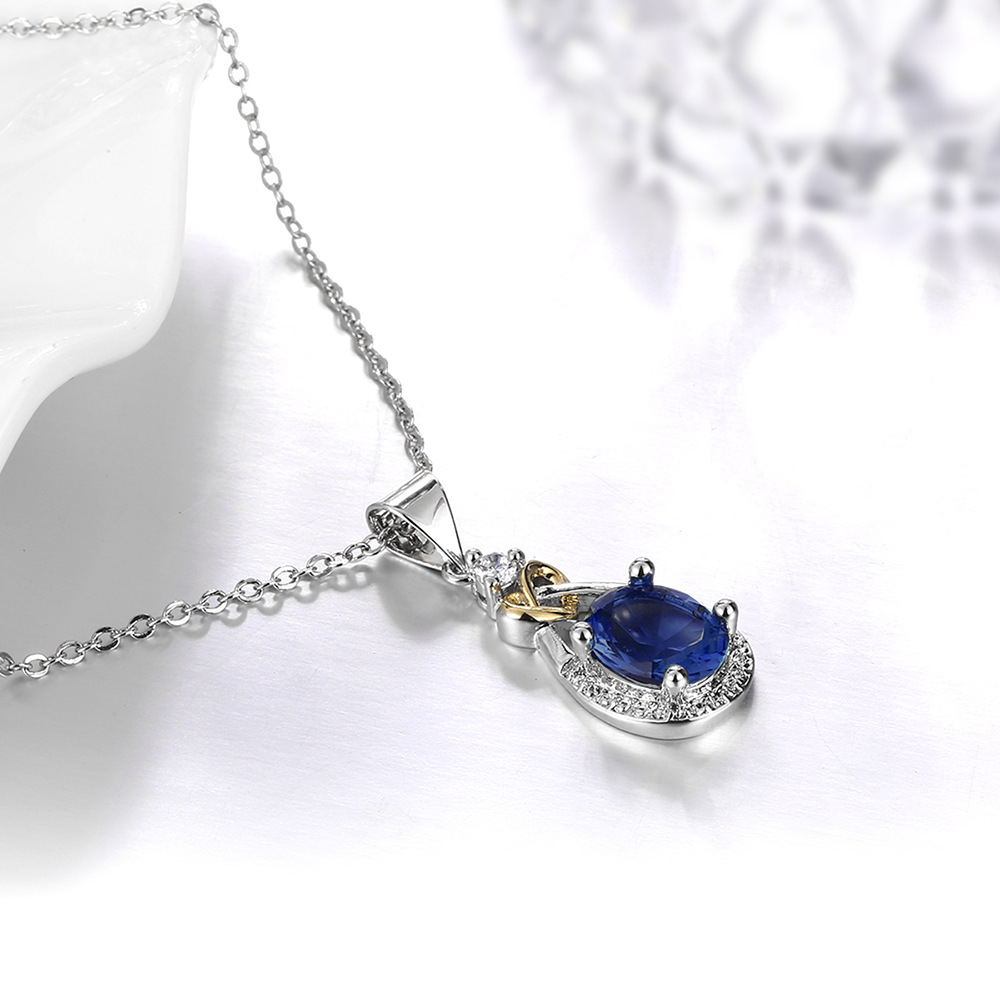I & zuan Hangers Vrouwen Voor Bruiloft 925 Sterling-zilver-Blue Oval Stone Party Kettingen Fijne sieraden N101