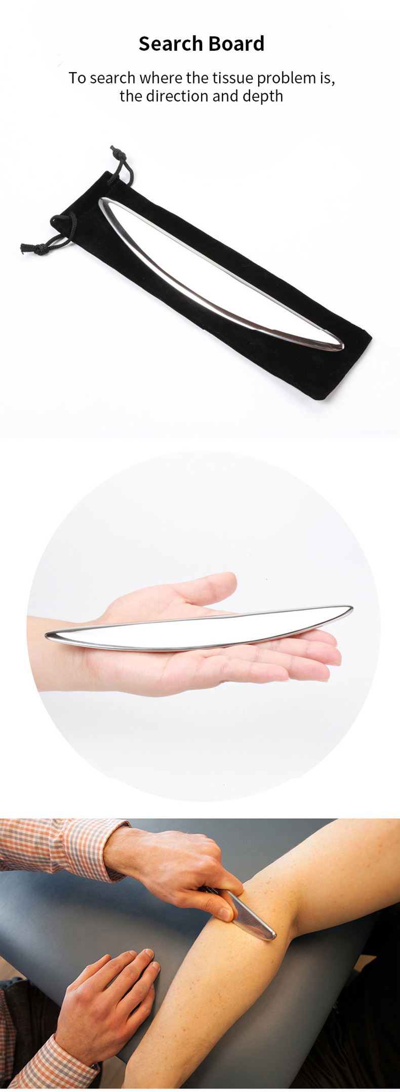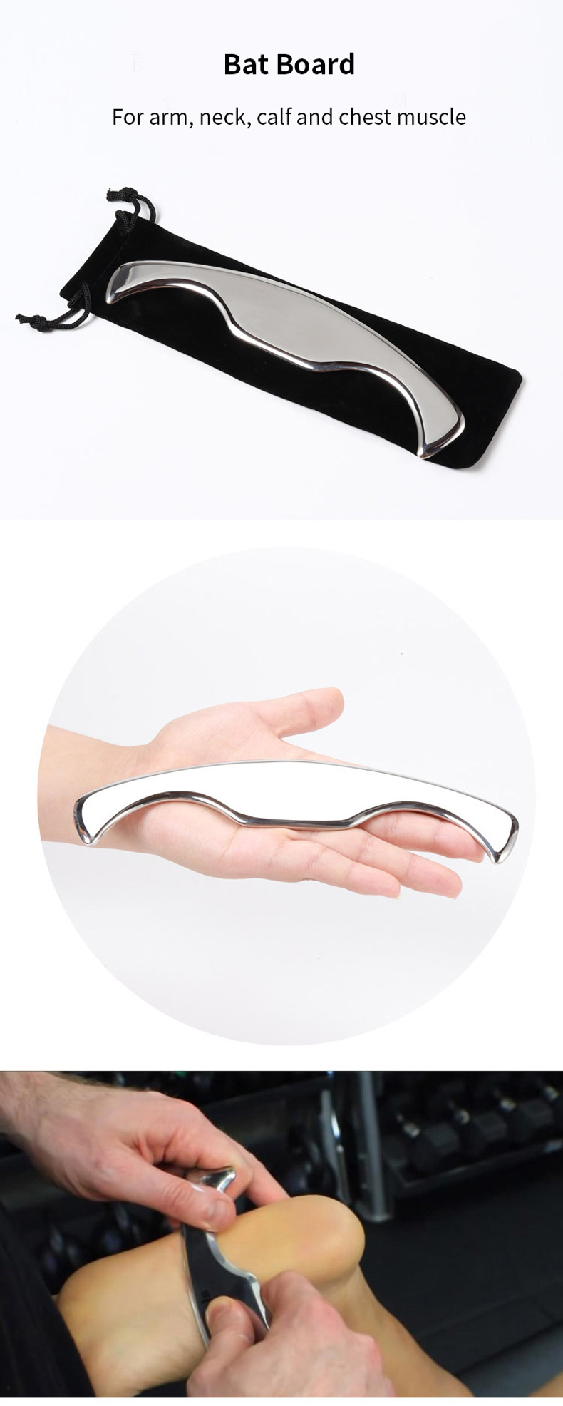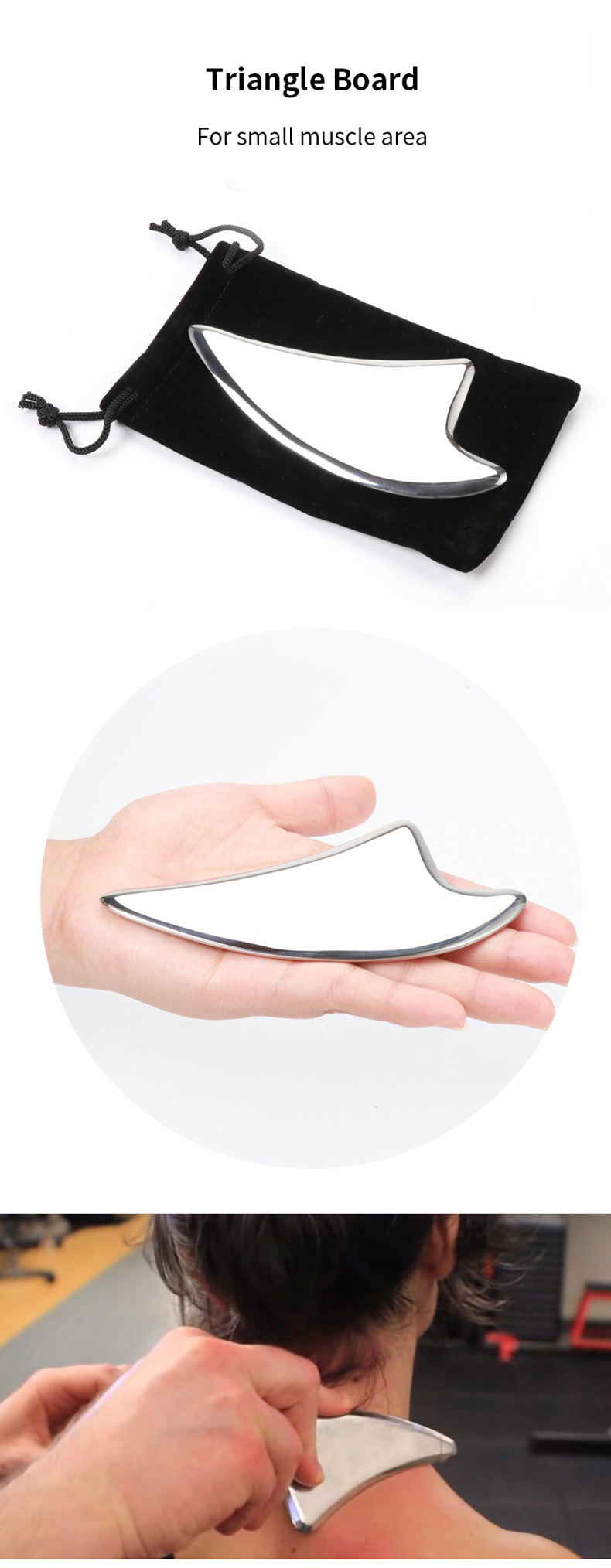 This fascia tool is the Chinese massager par excellence. A Gua Sha scraper is not just a back and neck massager. The intelligent design, optimal handling and the different sides of the scraper are perfect for the treatment of all body structures. The massage tools are successfully used worldwide in therapy, for example in the trigger point massage, as prevention, in the wellness area, as well as in physiotherapy. This special method uses a specially shaped massage tool to scrape the skin, stimulating blood circulation and reducing pain. In the fascia therapy, similar to the Graston Technique, therapists use the unique massage tool on the muscle fascial structures of the body to release bonds.