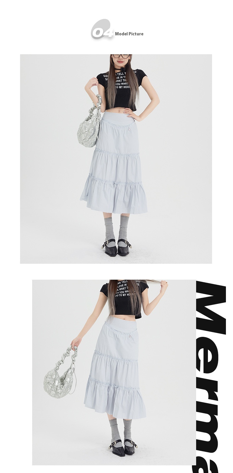 Skirt length: mid-length skirt
