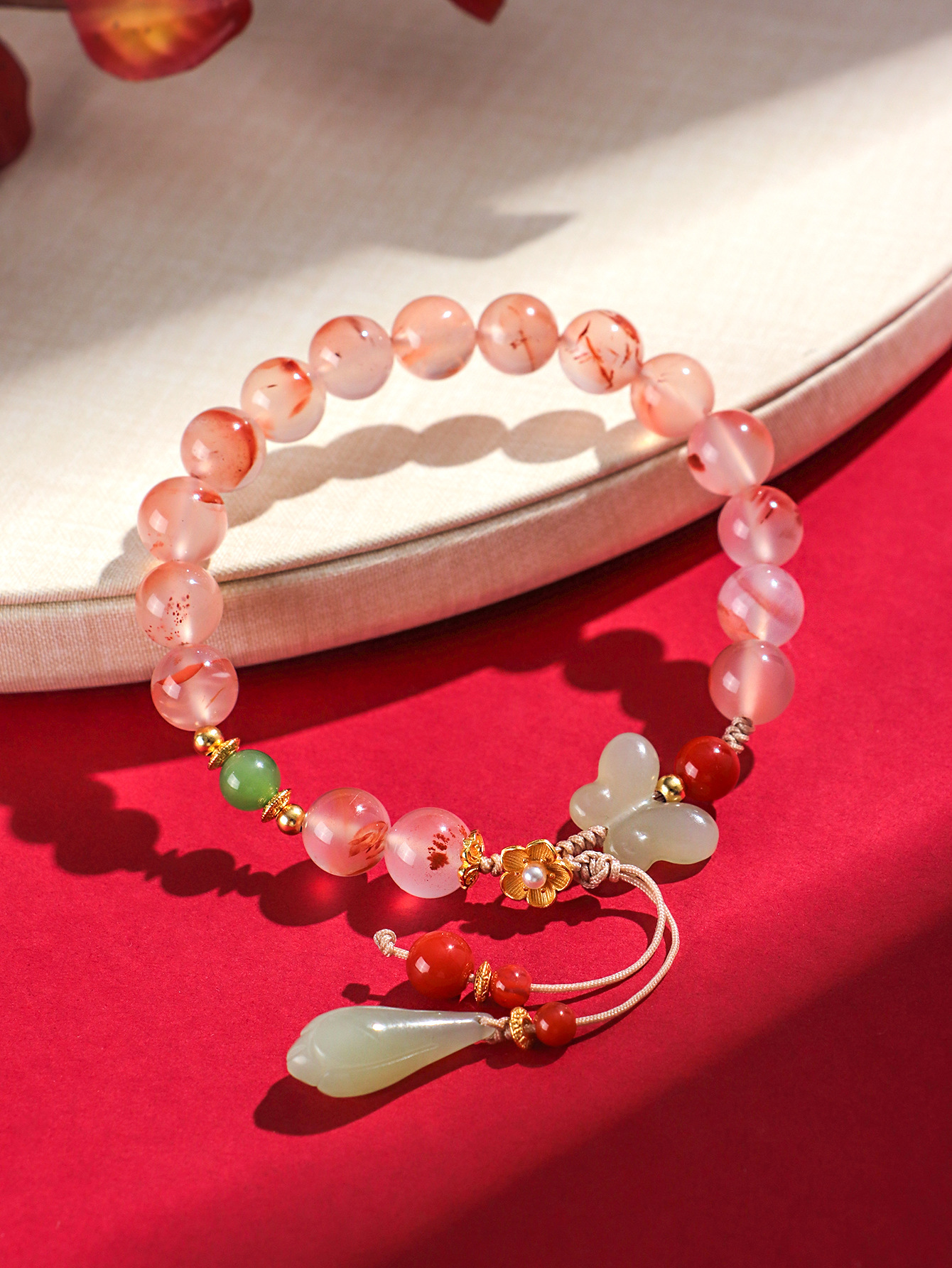 Color: ice floating south red bracelet, ice floating south red white agate fishtail bracelet, ice floating south red butterfly orchid jade bracelet
