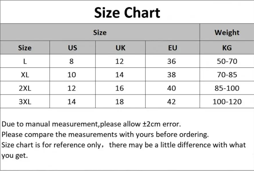1. Asian sizes are 1 to 2 sizes smaller than European and American people. Choose the larger size if your size between two sizes. Please allow 2-3cm differences due to manual measurement. 2. Please check the size chart carefully before you buy the item, if you don't know how to choose size, please contact our customer service. 3.As you know, the different computers display colors differently, the color of the actual item may vary slightly from the following images.