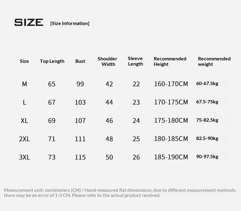 Sizes: M, L, XL, XXL, XXXL