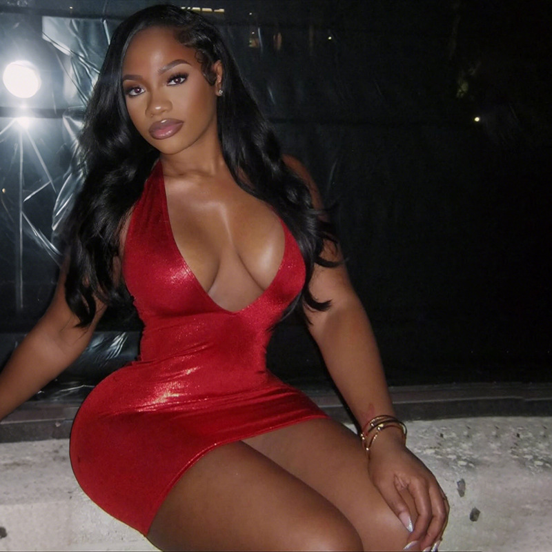 Trendy Elements: Solid Color, Halter Neck, Open Back