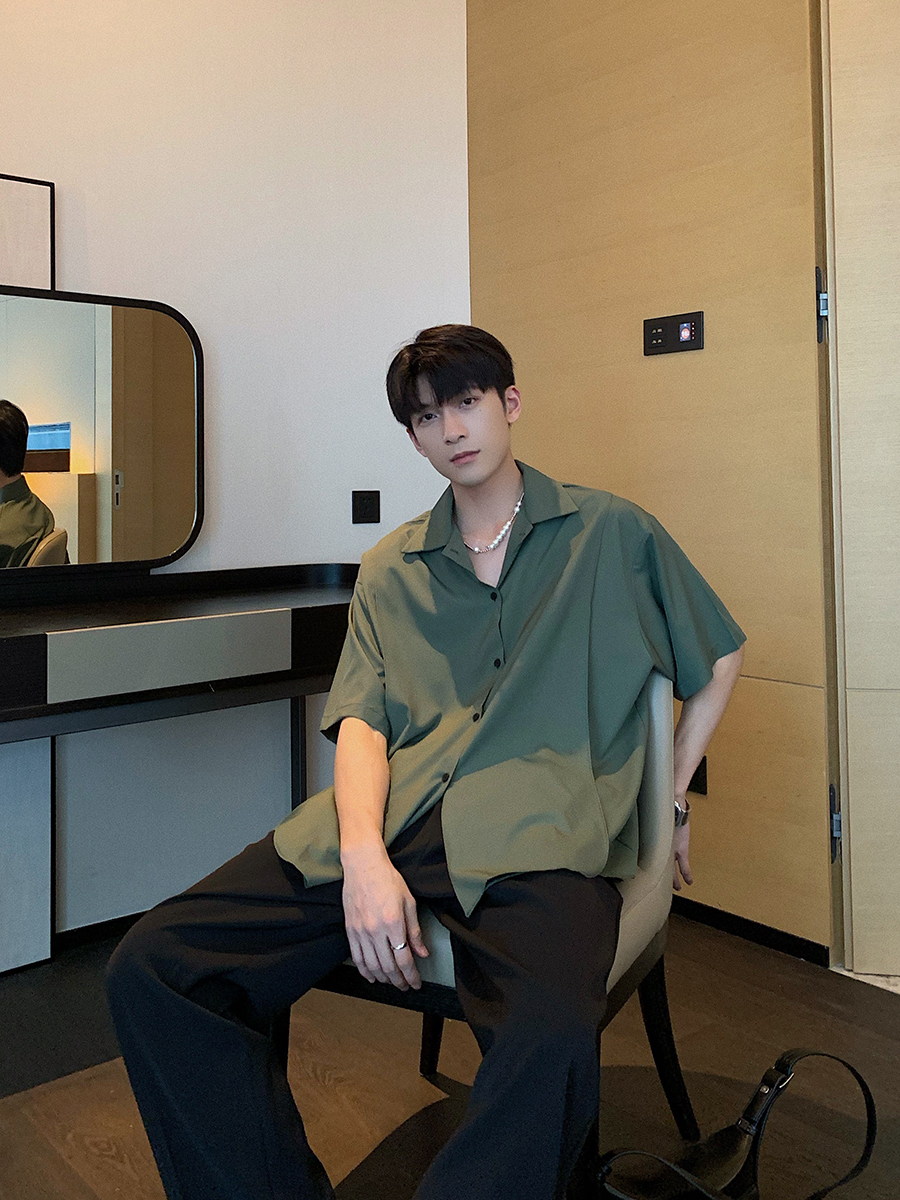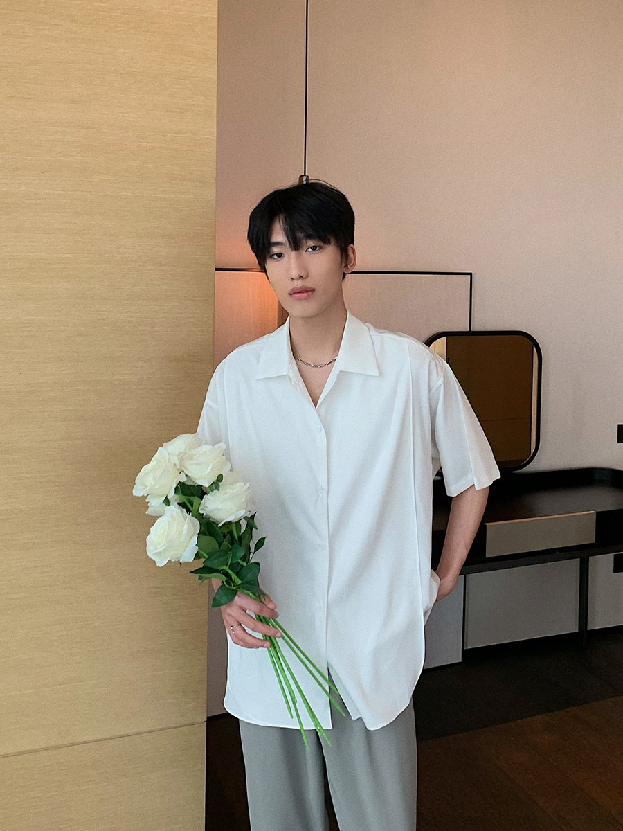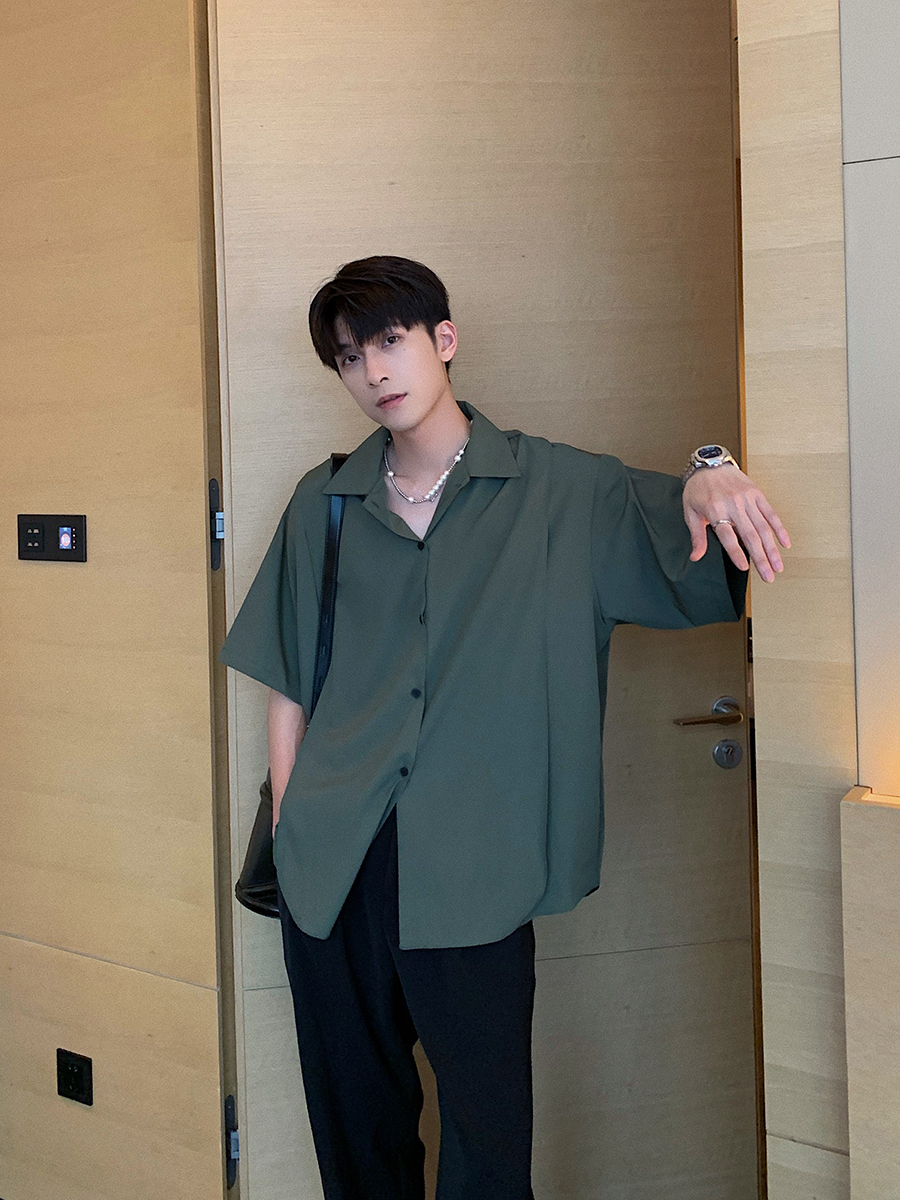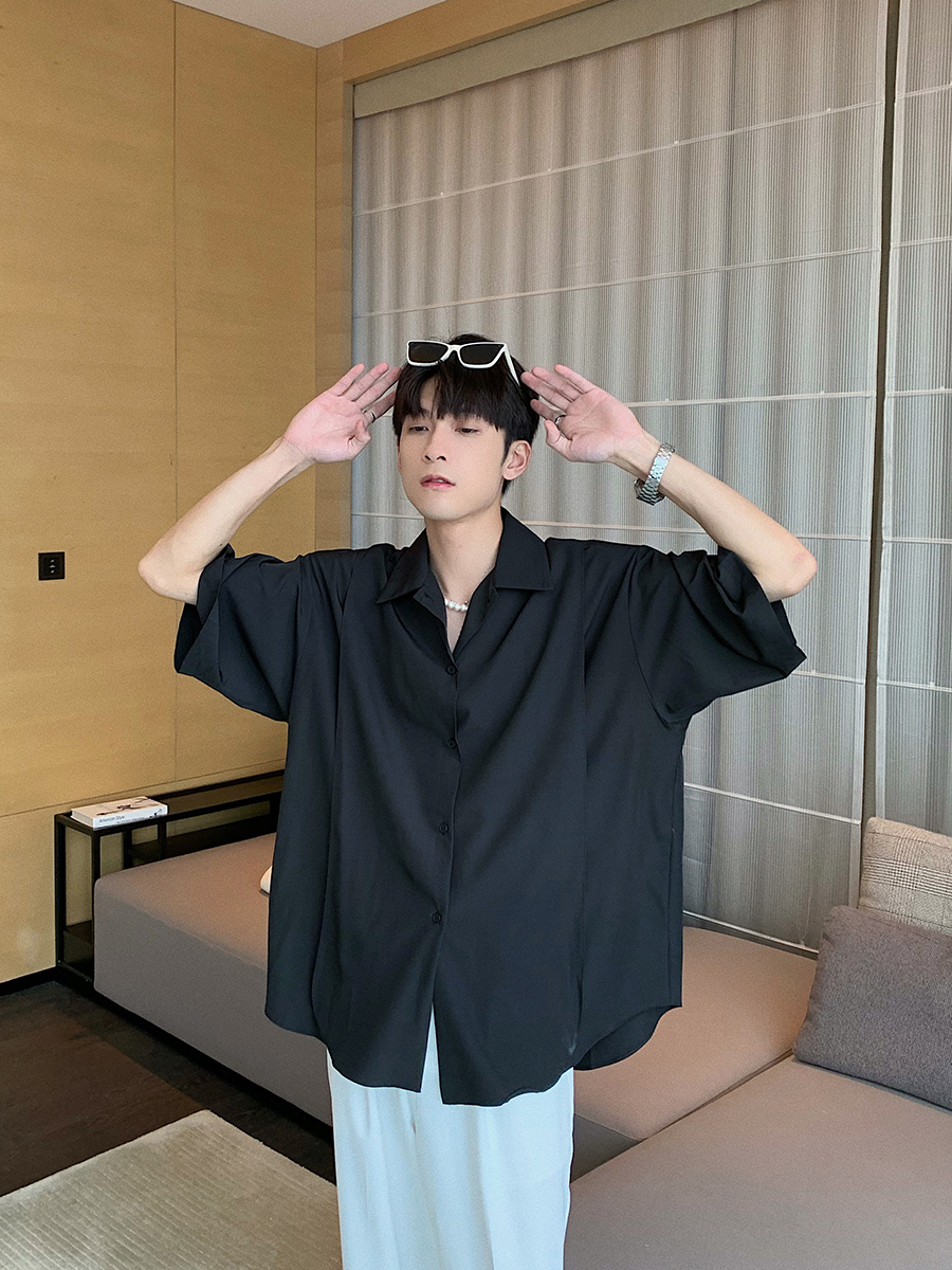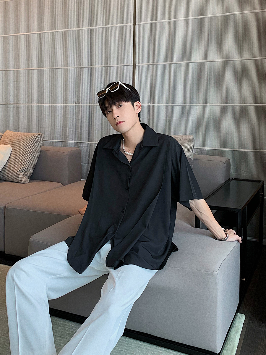 Ice Silk Slippery Casual Loose Shirt Men's Short Sleeves