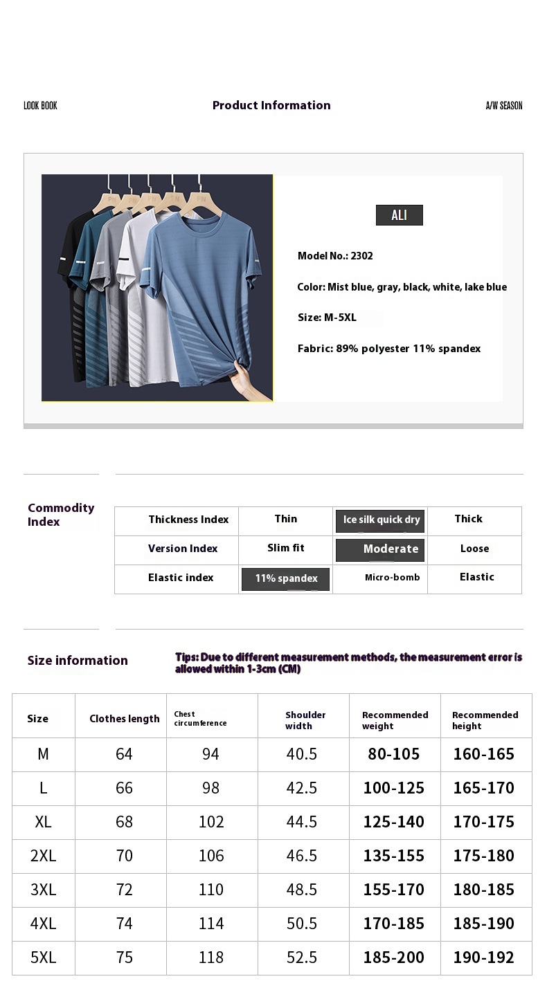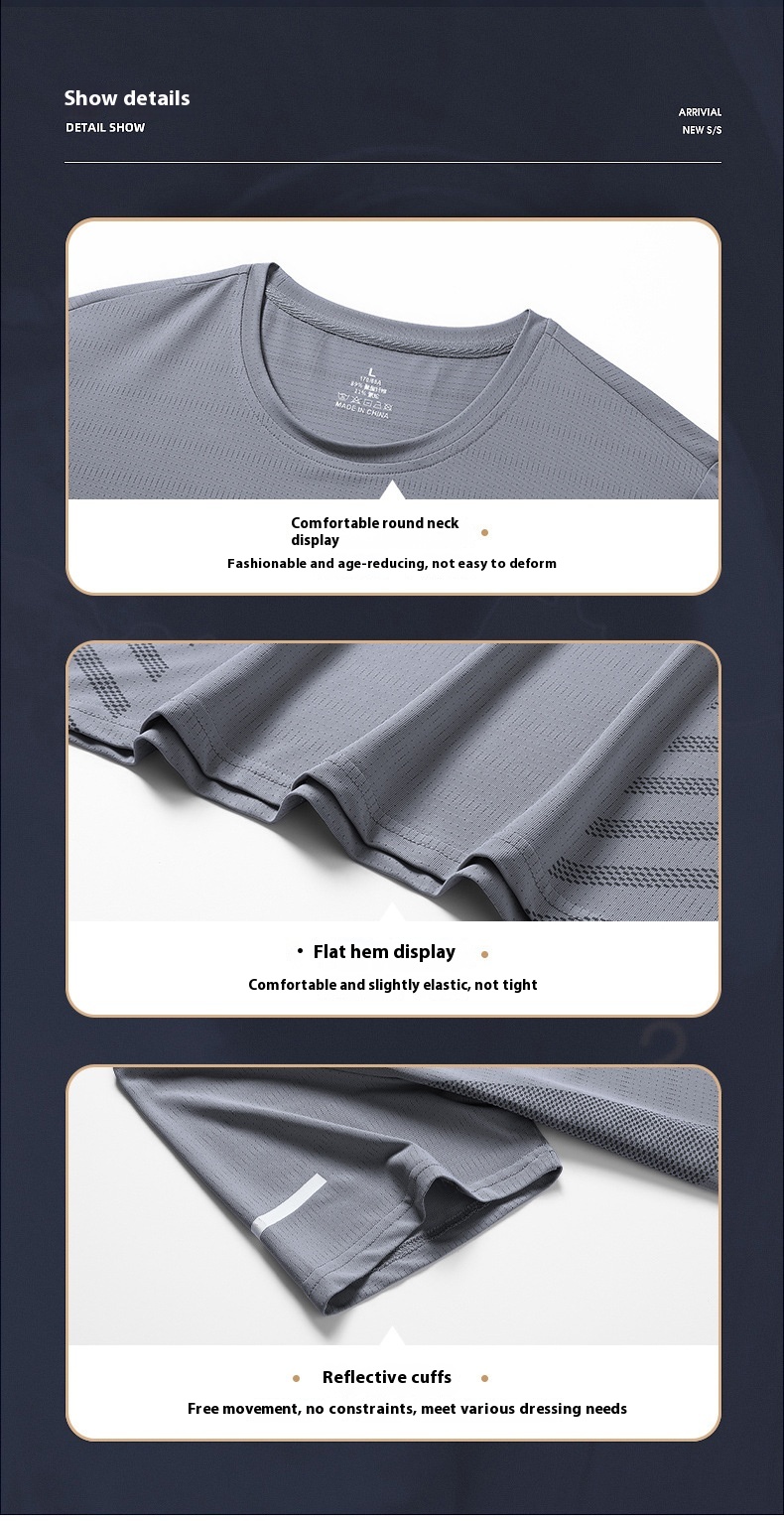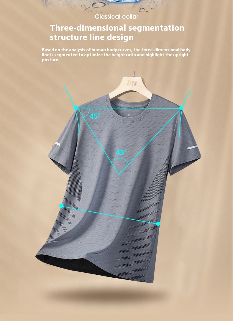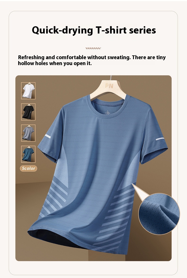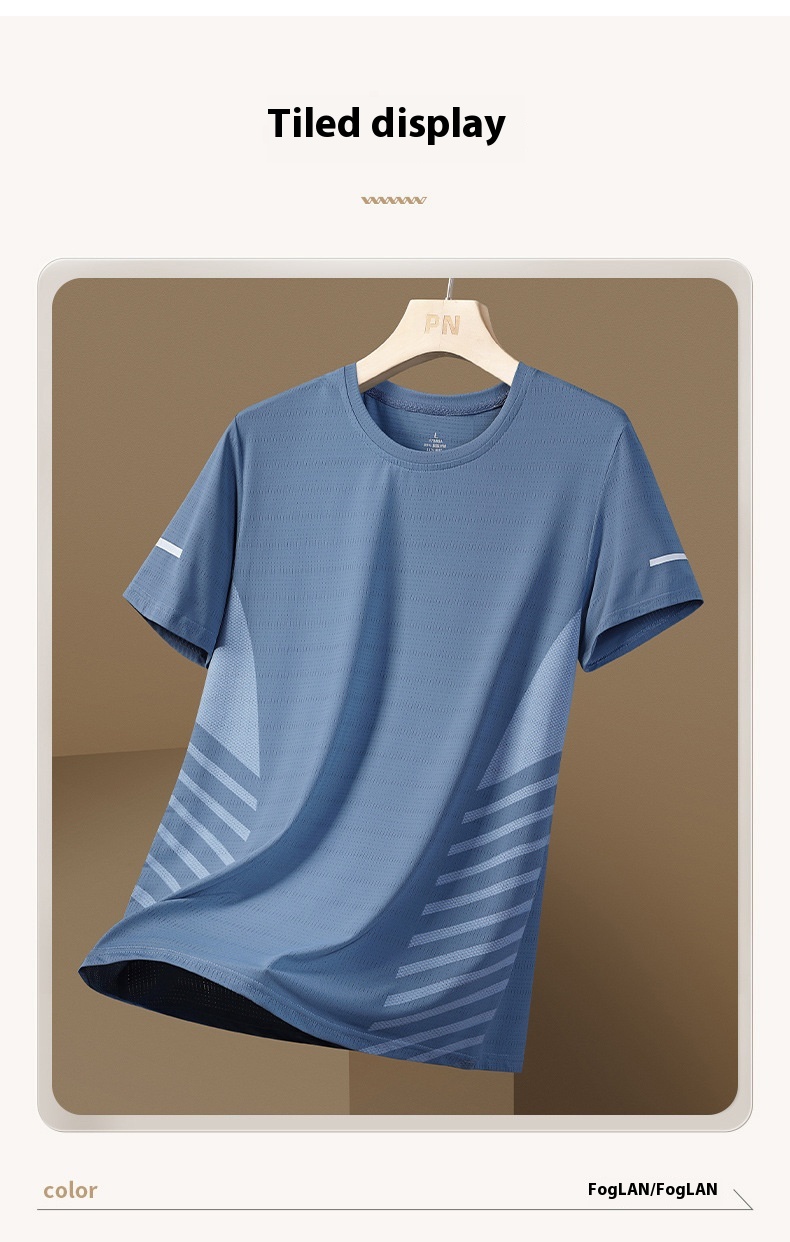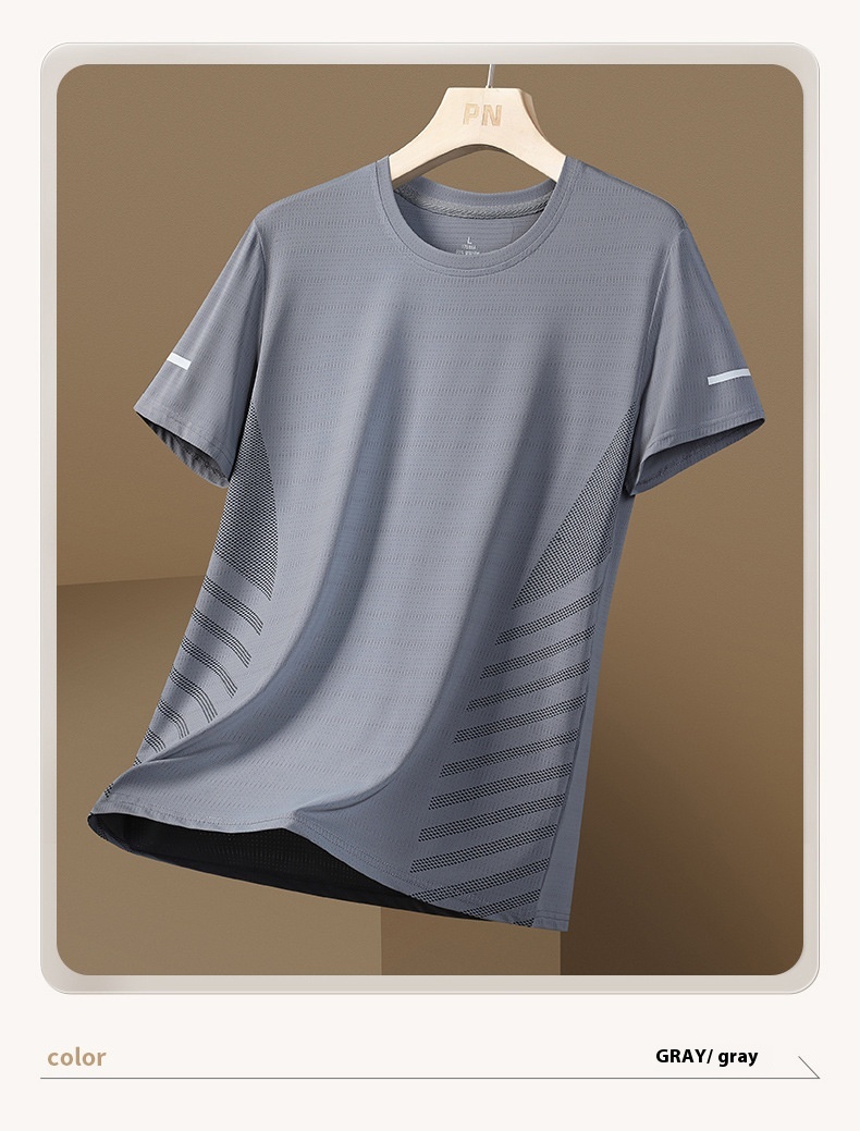 Ice Silk T-shirt Men's Round Neck Quick-drying Clothes Short Sleeve Thin Breathable