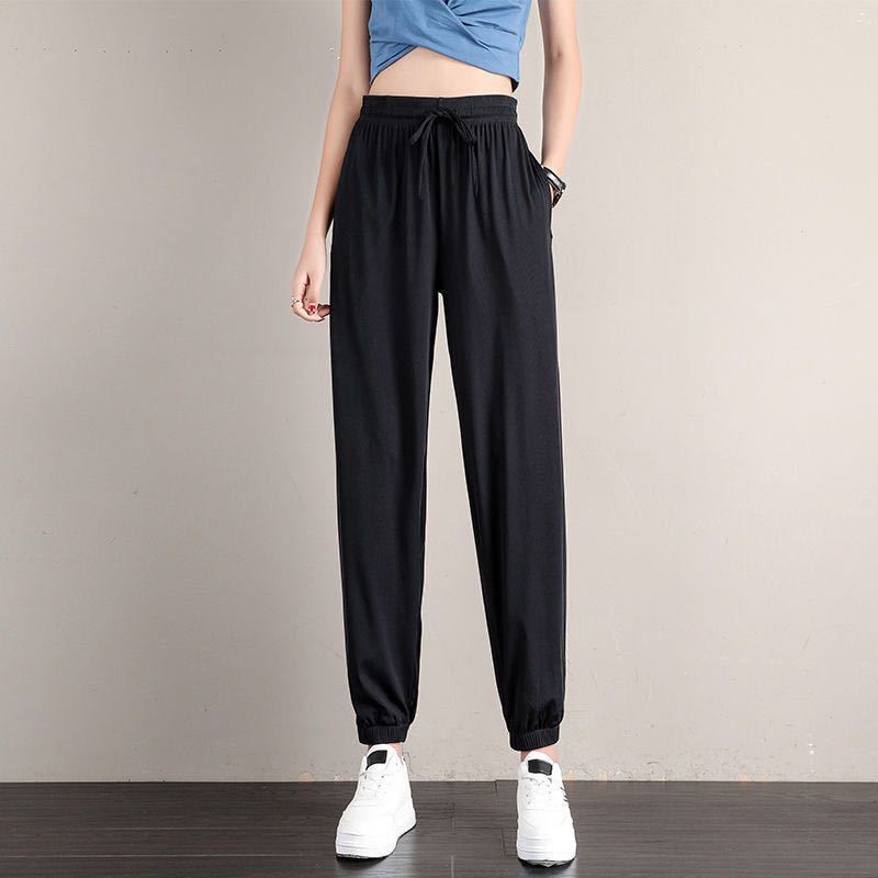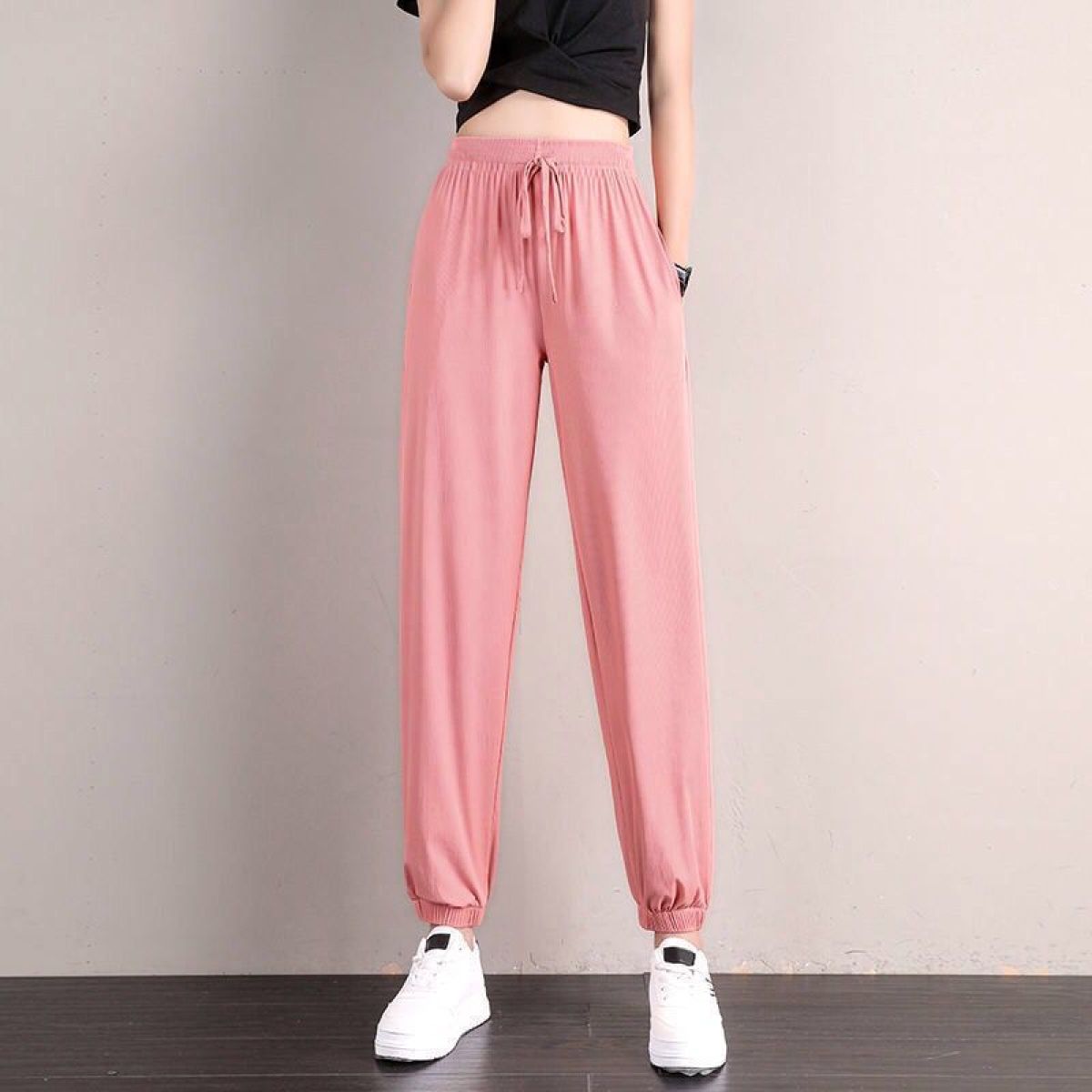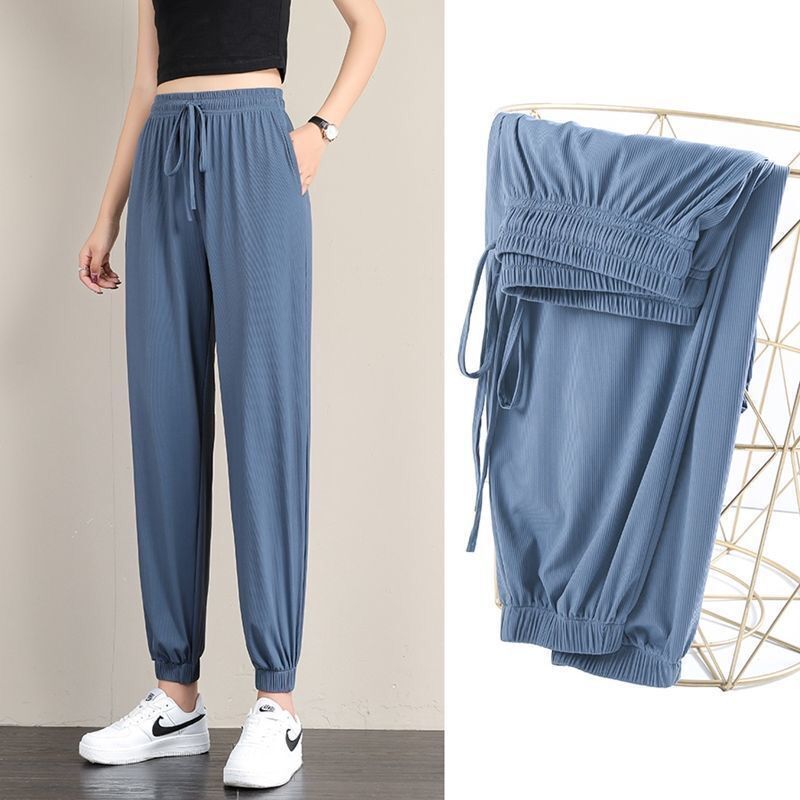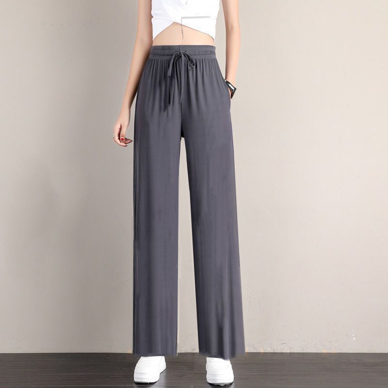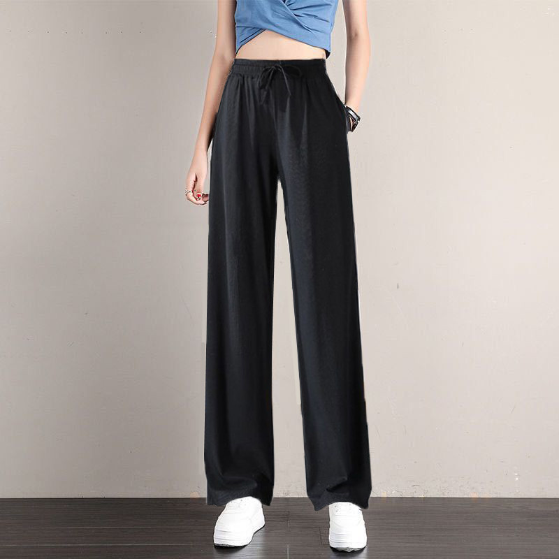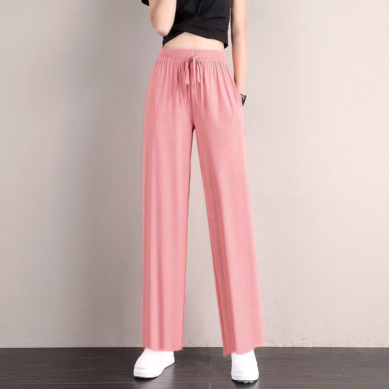 Colors: Ice Silk Sports Pants Pink [Cuffed], Ice Silk Wide-Leg Pants Black [Wide Leg], Ice Silk Wide-Leg Pants Gray [Wide Leg], Ice Silk Wide-Leg Pants Pink [Wide Leg], Ice Silk Wide-Leg Pants Blue [Wide Leg], Ice Silk Sports Pants Black [Cuffed], Ice Silk Sports Pants Gray [Cuffed], Ice Silk Sports Pants Blue [Cuffed]