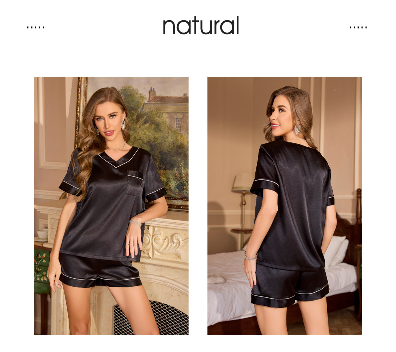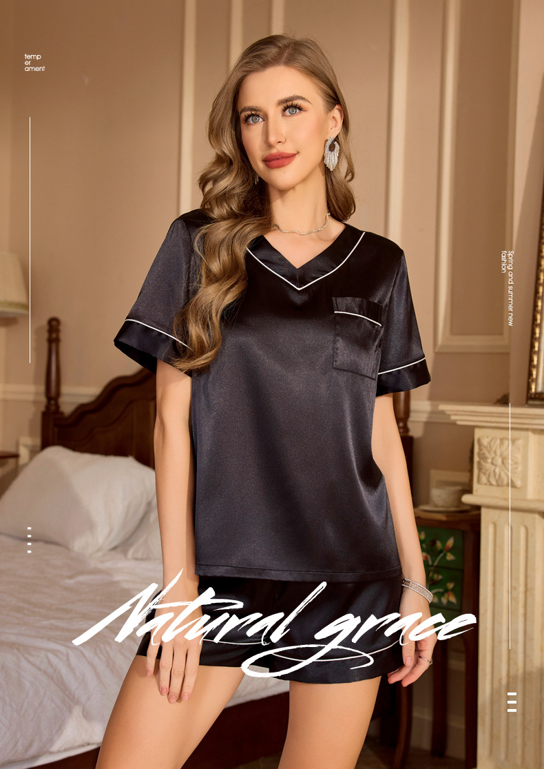Ice Silk Womens Short-Sleeve Shorts Set