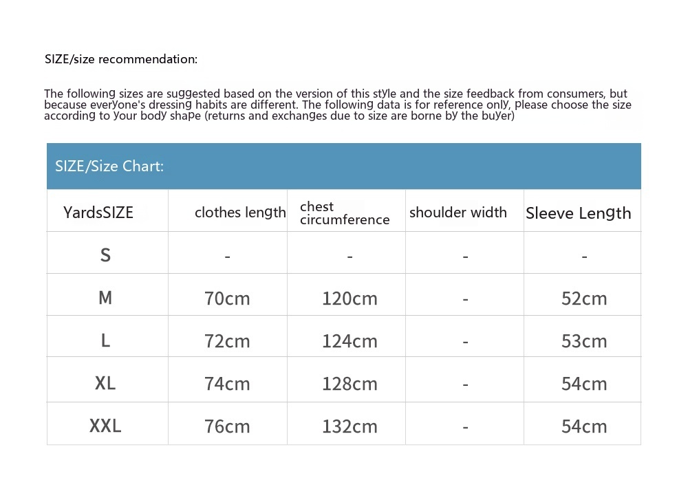 1. Asian sizes are 1 to 2 sizes smaller than European and American people. Choose the larger size if your size between two sizes. Please allow 2-3cm differences due to manual measurement. 2. Please check the size chart carefully before you buy the item, if you don't know how to choose size, please contact our customer service. 3.As you know, the different computers display colors differently, the color of the actual item may vary slightly from the following images.