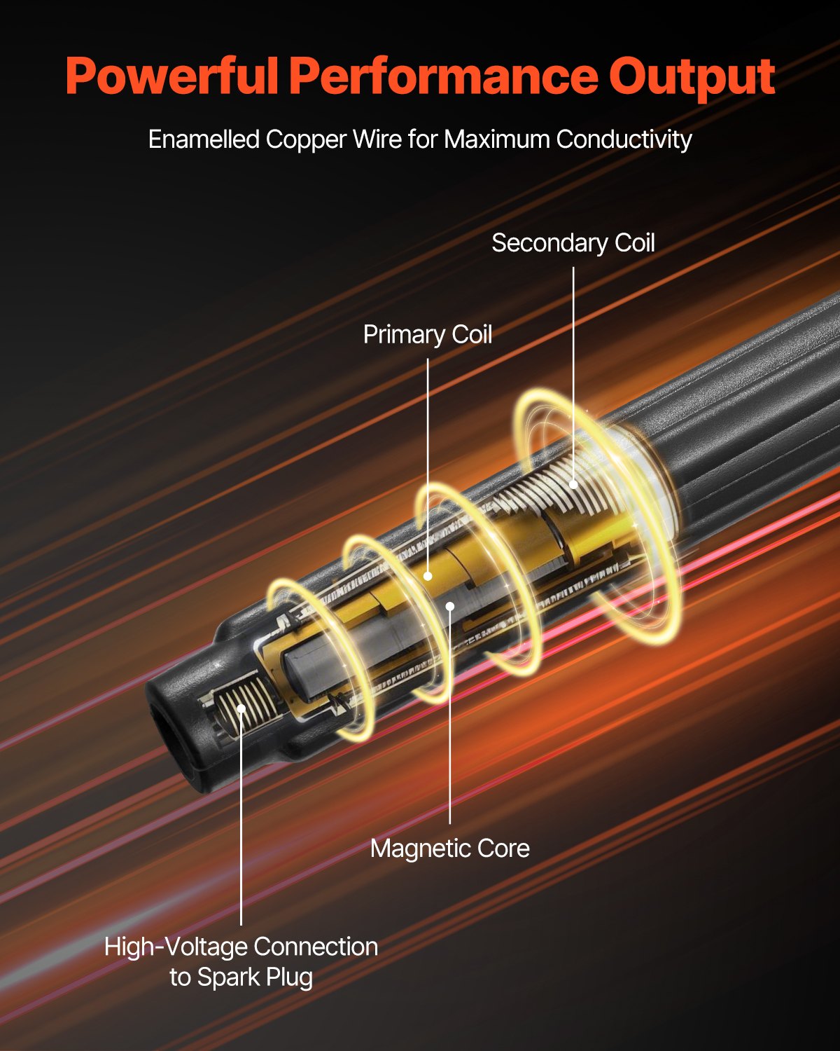 High-Efficiency Energy Conversion: The enameled copper wire ignition coil has excellent conductivity, enabling efficient energy transmission with minimal energy loss, ensuring high-performance energy conversion, and providing good rust durability