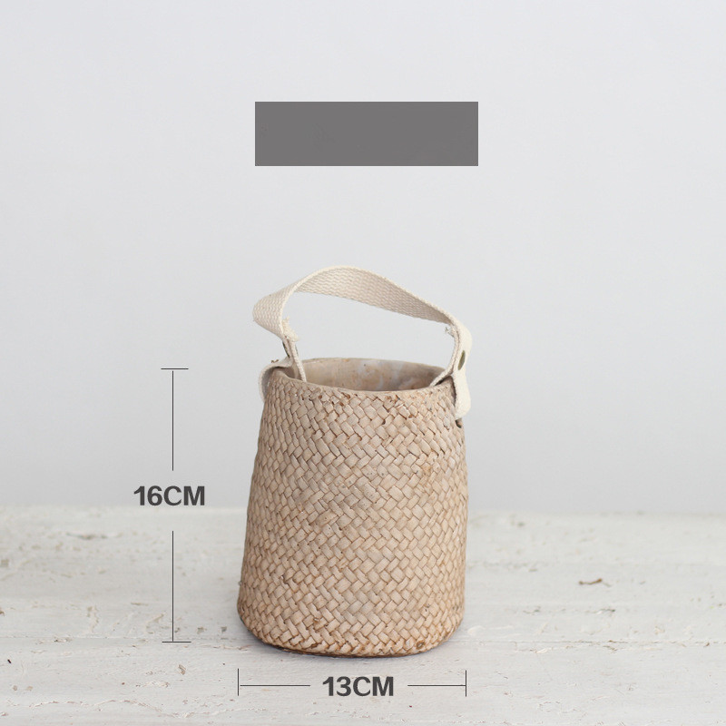 Features: This is a cement flowerpot imitating a hand-woven bag. From the mold forming to the color treatment of the surface effect, the woven pattern on the surface of the flowerpot is vividly reflected. This kind of flowerpot not only has the popular retro elements, but also is more durable.