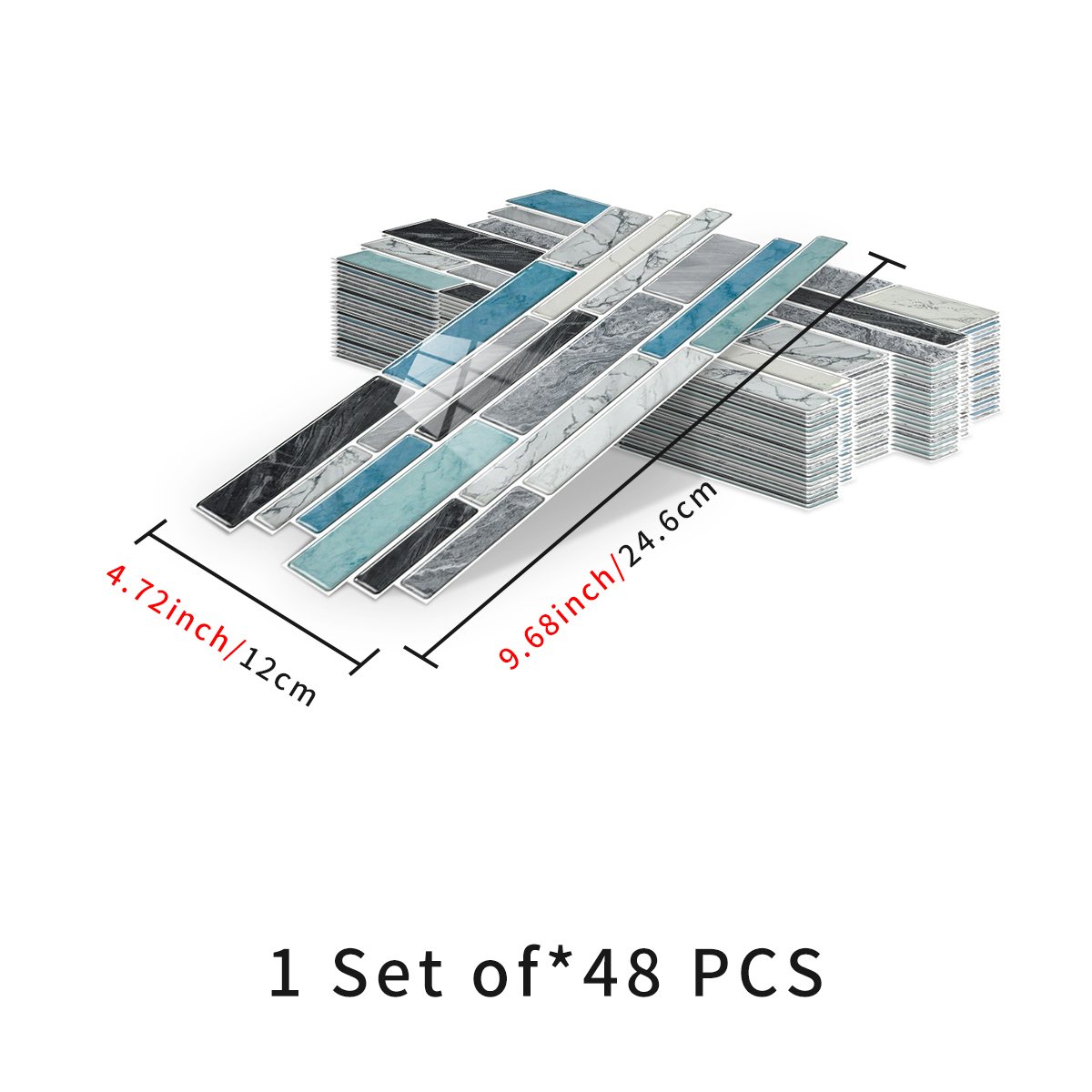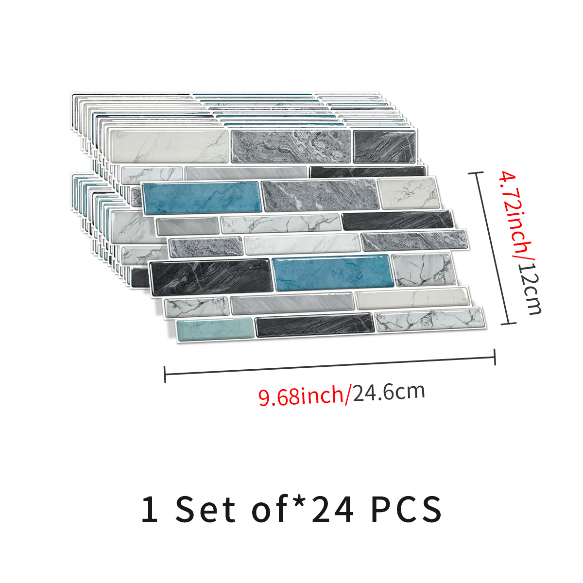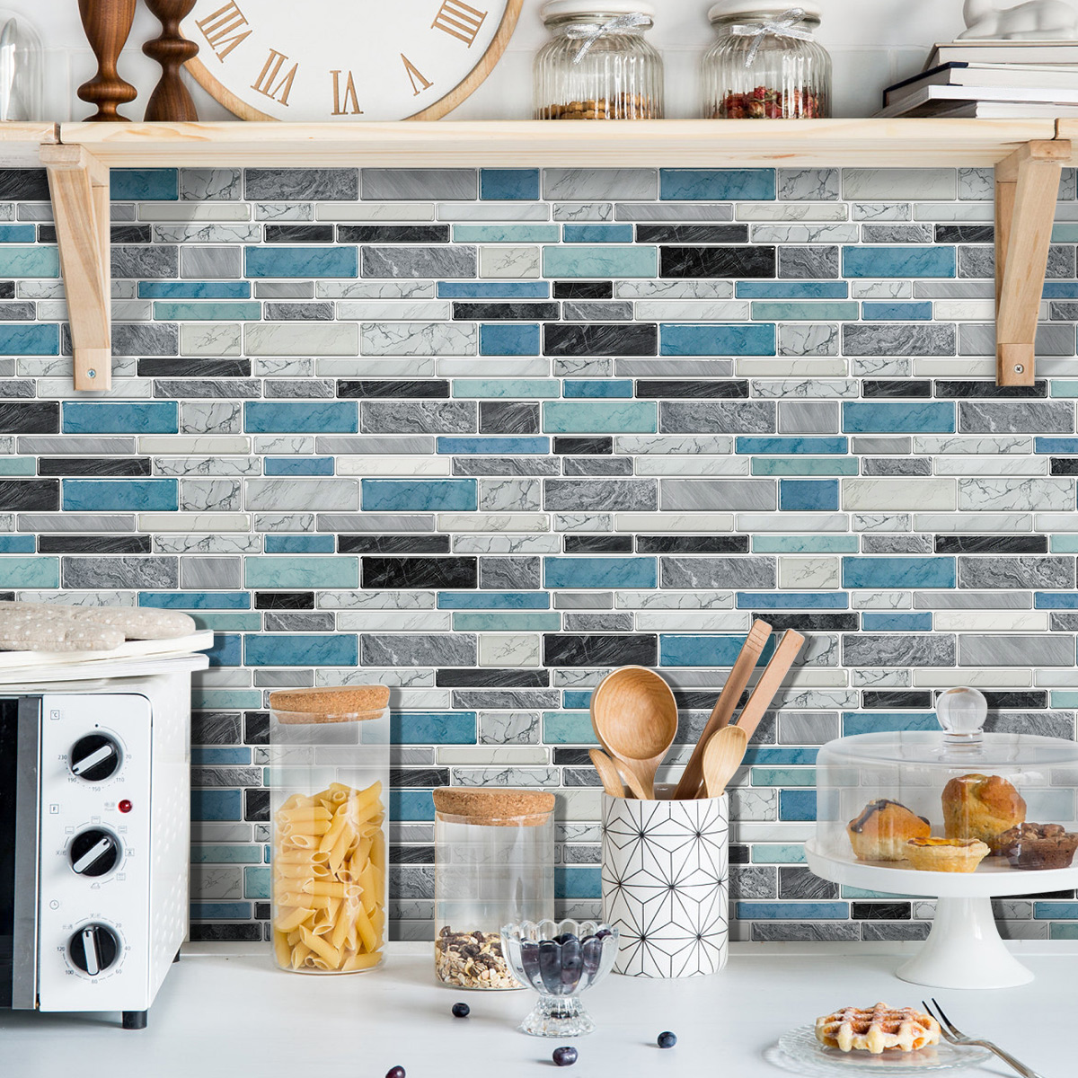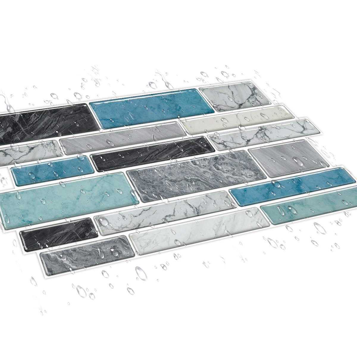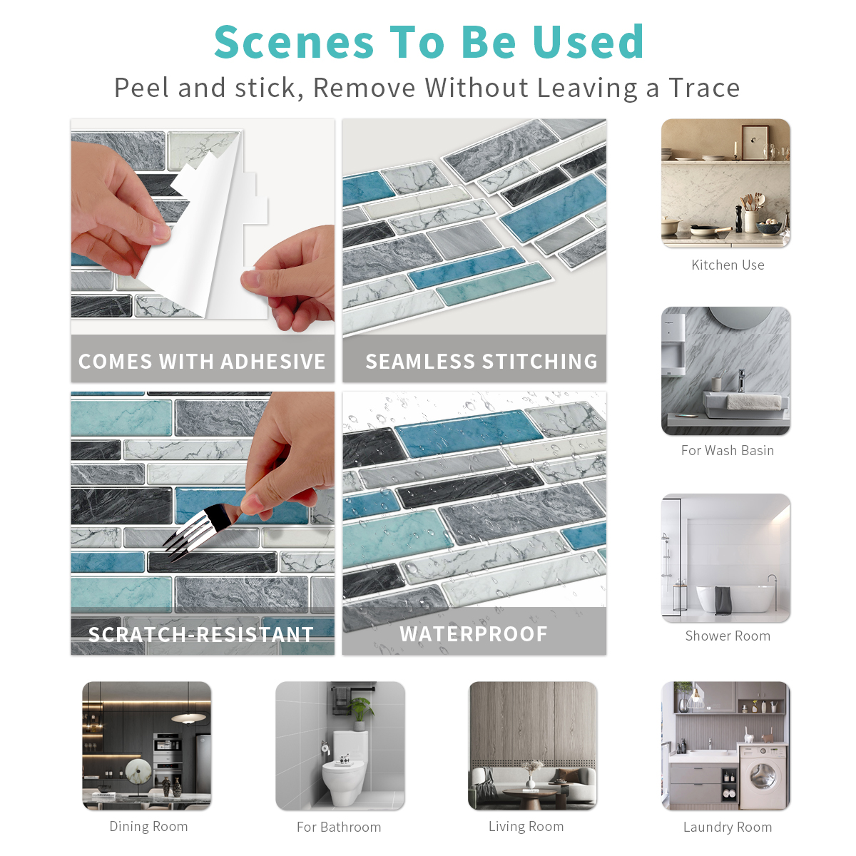 Imitation Tile Marble Effect Waterproof And Oil-Resistant Peel-Off Tile Stickers Blue Green Kitchen Bathroom Laundry Room Wall Decor