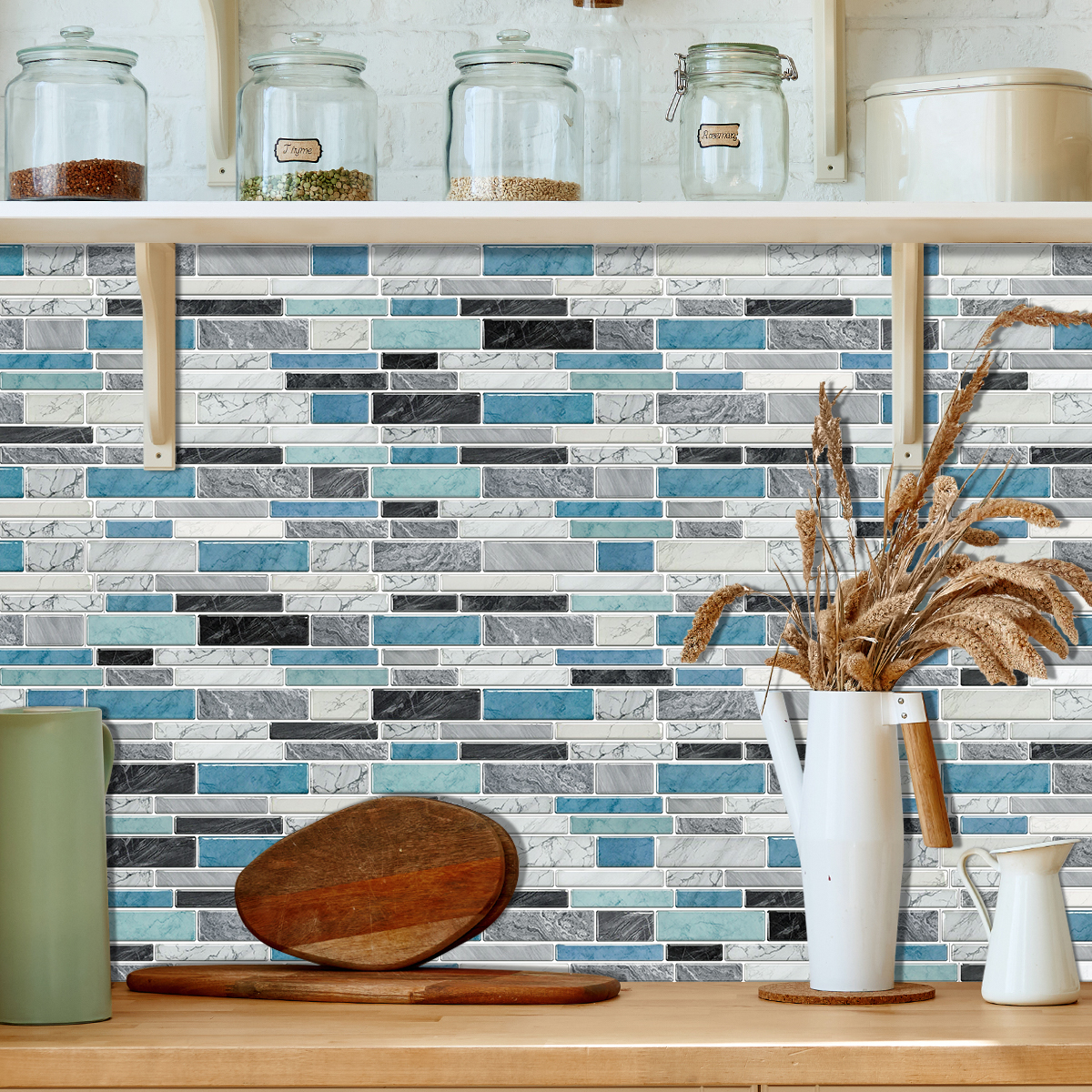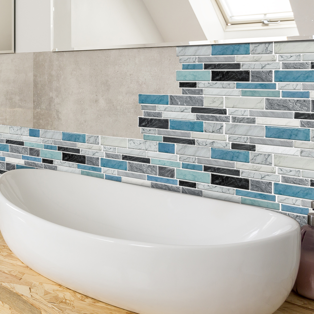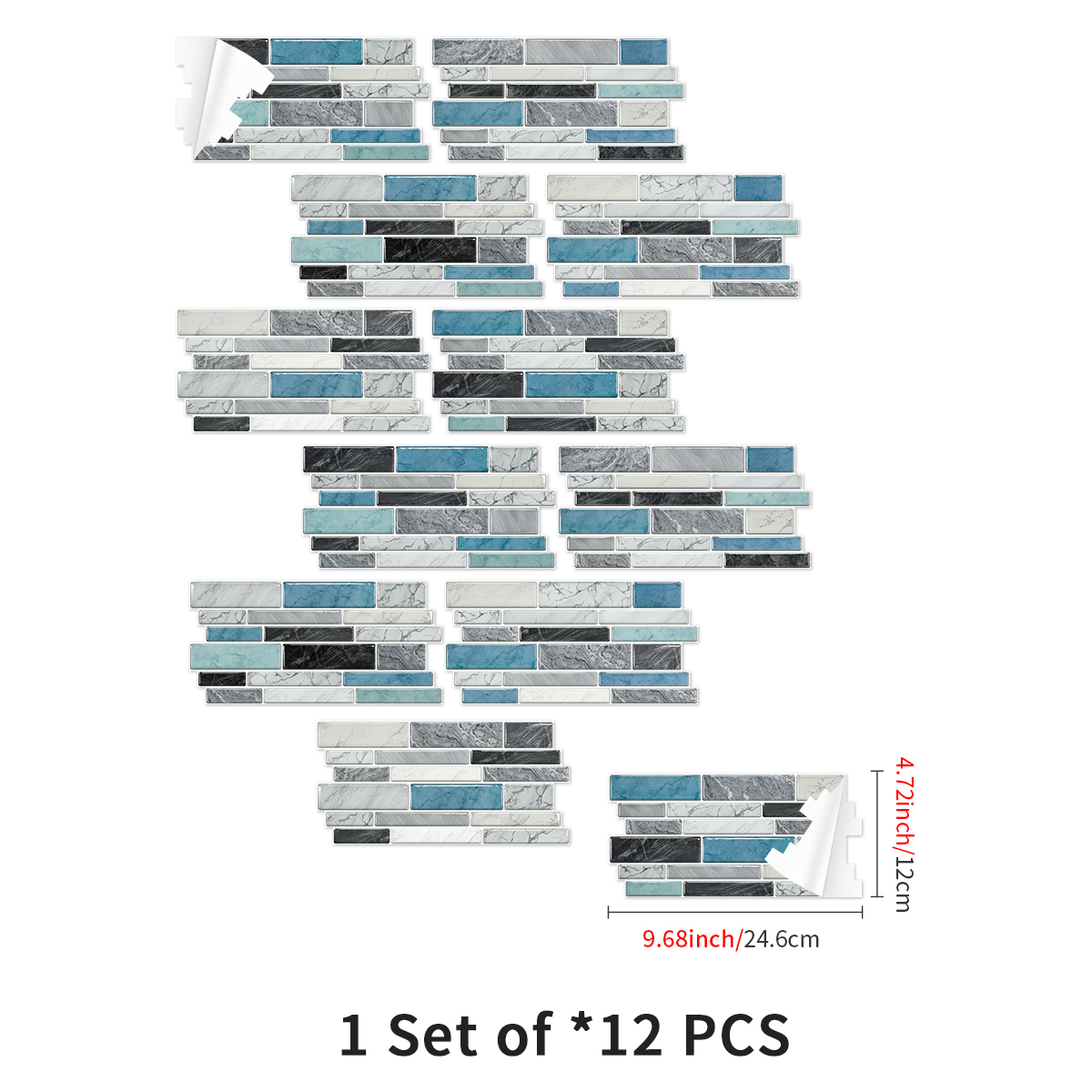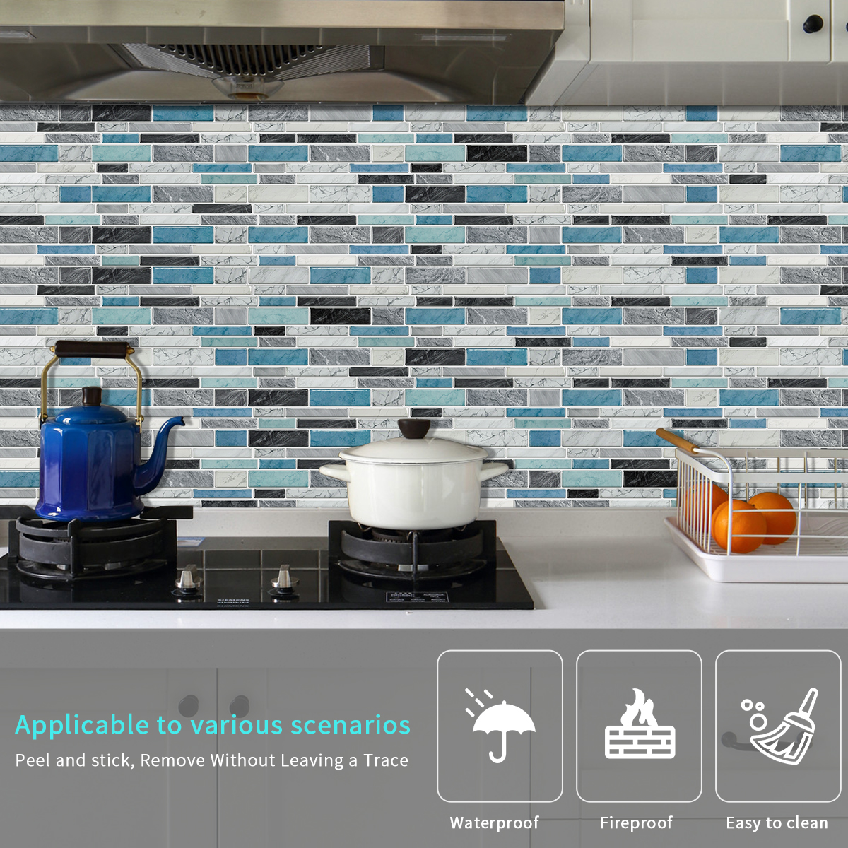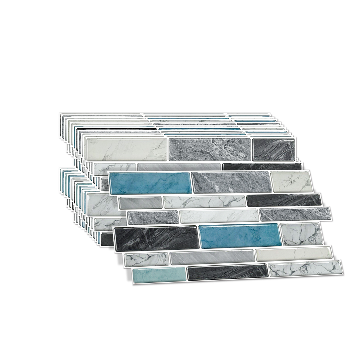 Imitation Tile Marble Effect Waterproof And Oil-Resistant Peel-Off Tile Stickers Blue Green Kitchen Bathroom Laundry Room Wall Decor