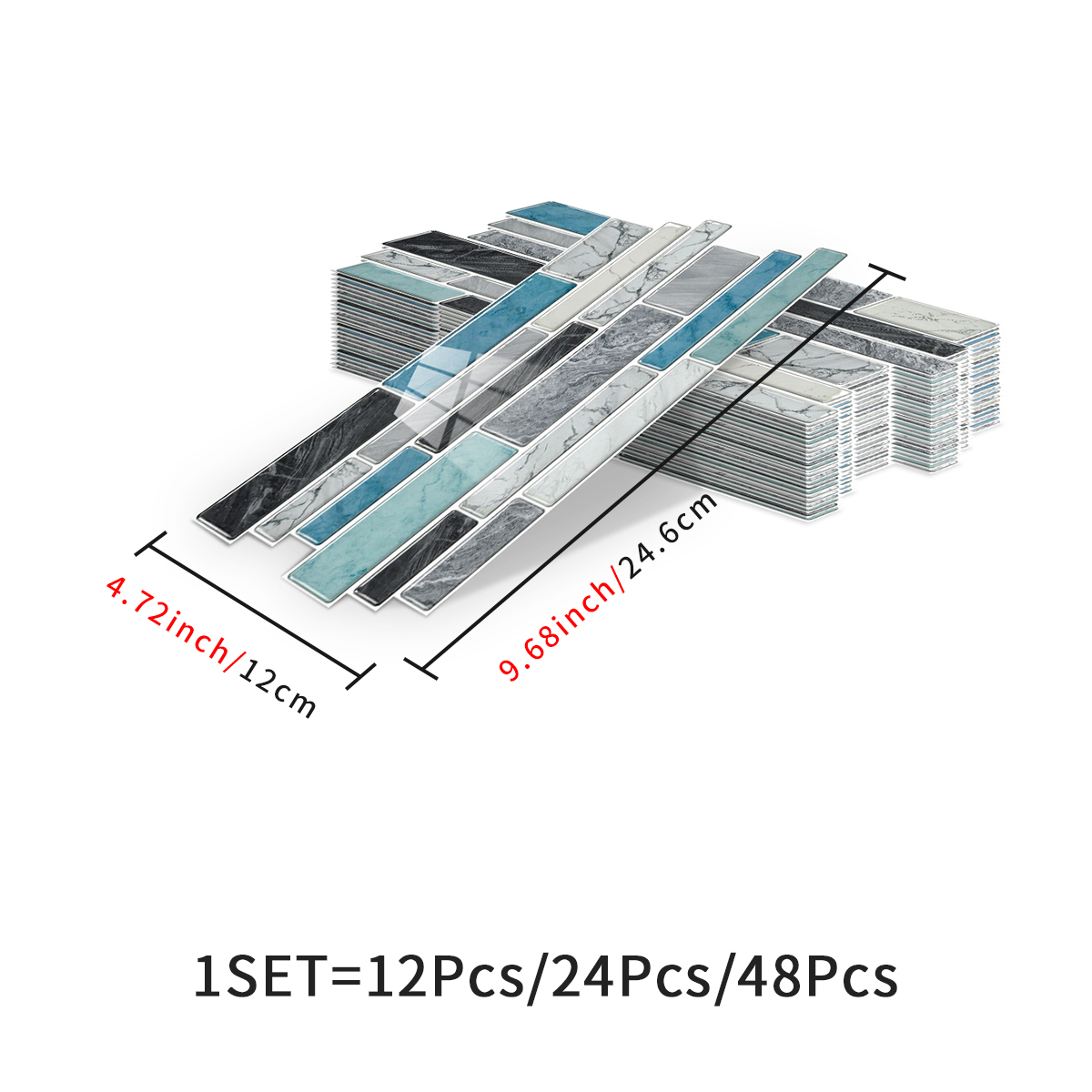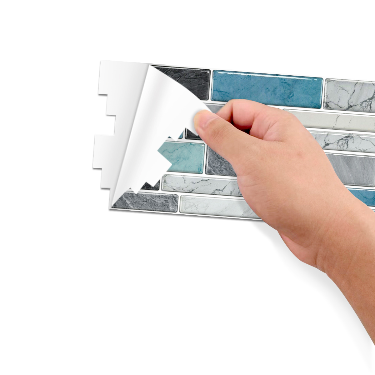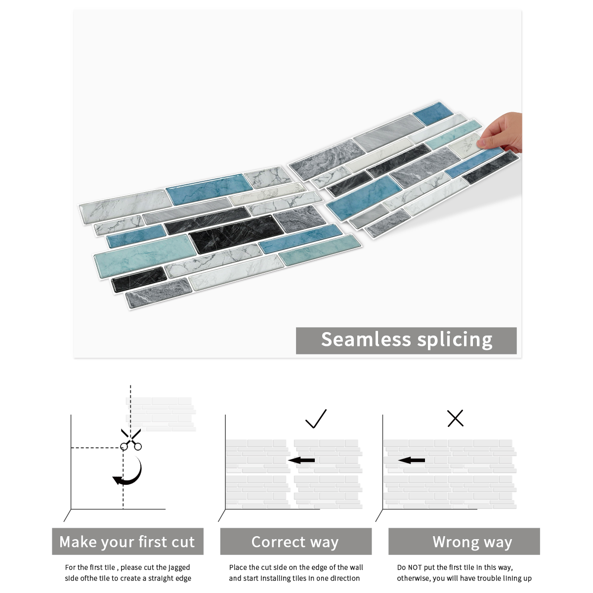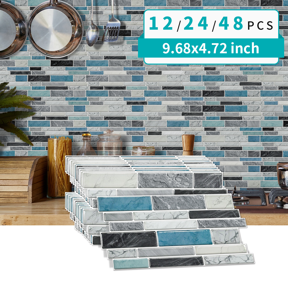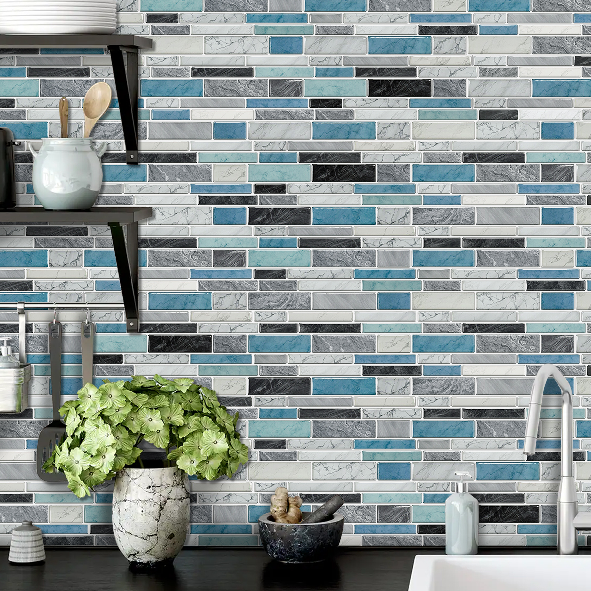 Imitation Tile Marble Effect Waterproof And Oil-Resistant Peel-Off Tile Stickers Blue Green Kitchen Bathroom Laundry Room Wall Decor